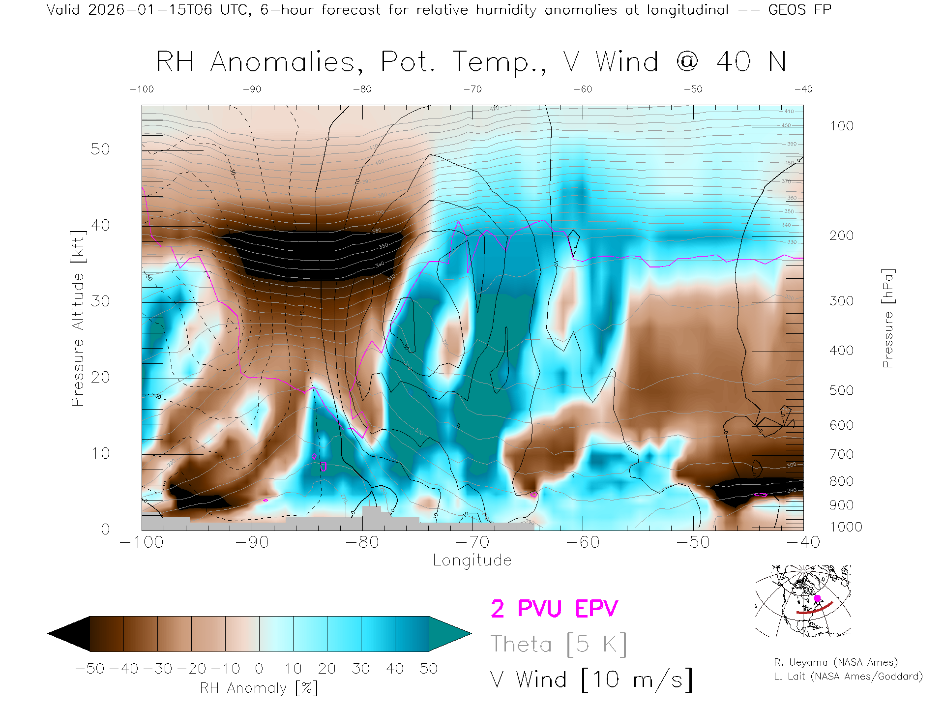 GEOS Forecast Rel. Hum. X-Section (40 N)