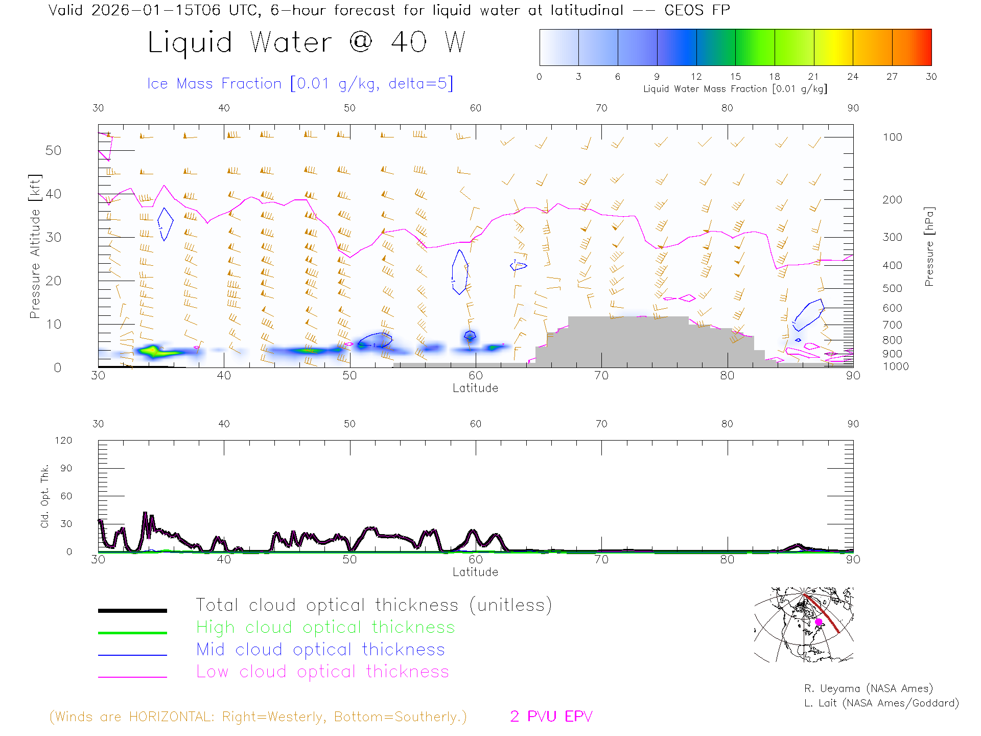 GEOS Forecast Cloud Water Content X-Section (40 W)