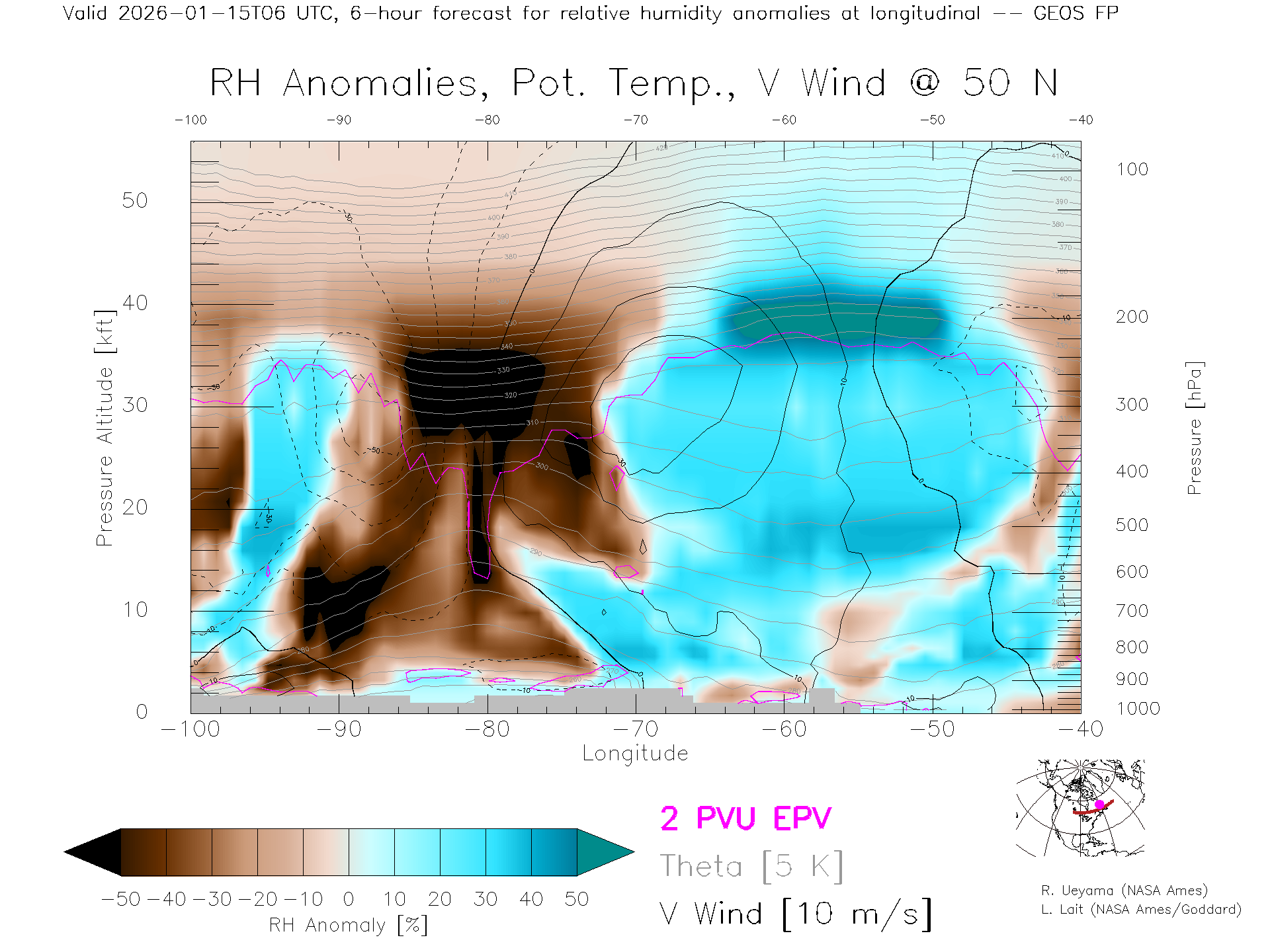 GEOS Forecast Rel. Hum. X-Section (50 N)