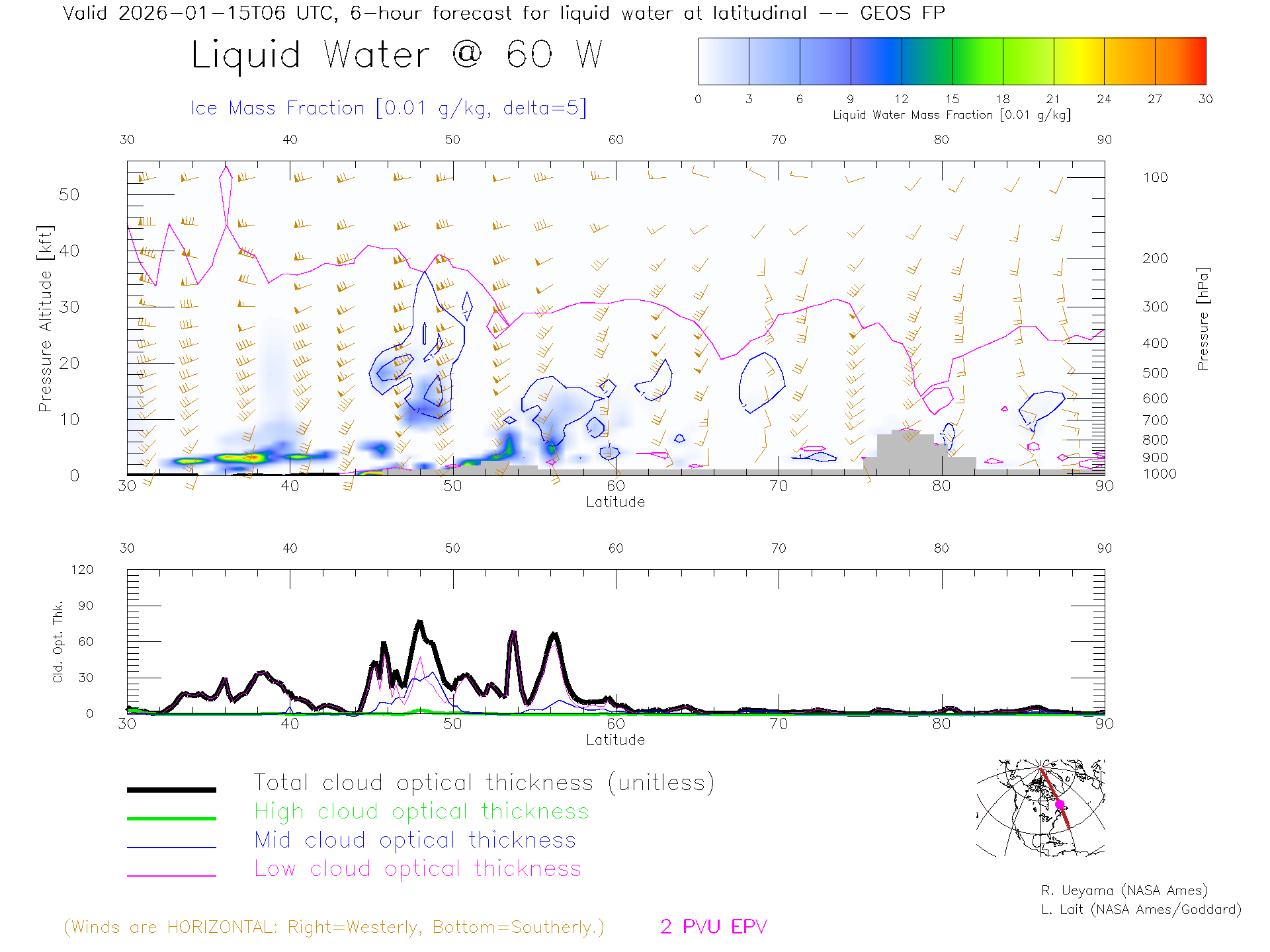 GEOS Forecast Cloud Water Content X-Section (60 W)
