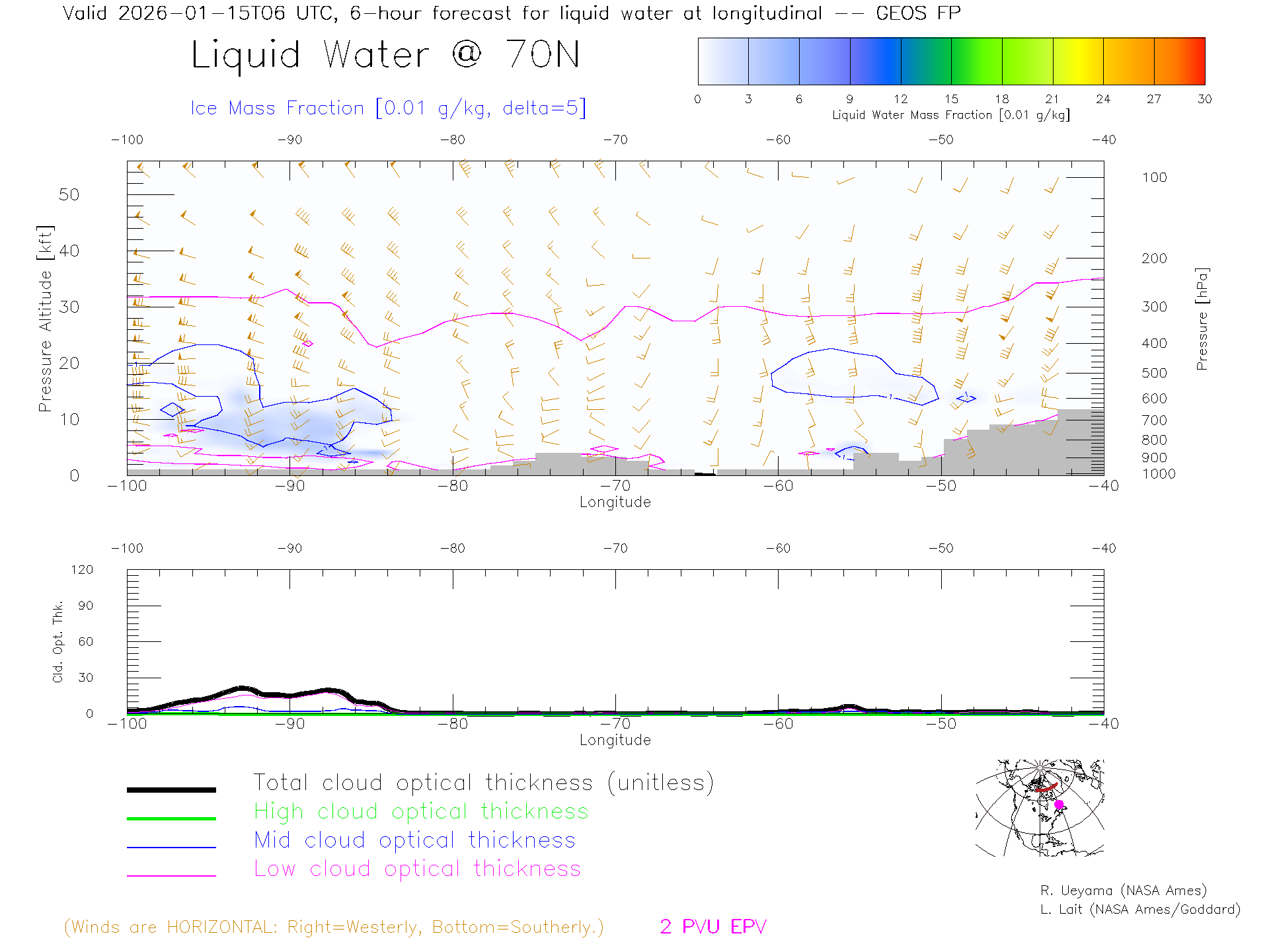 GEOS Forecast Cloud Water Content X-Section (70 N)