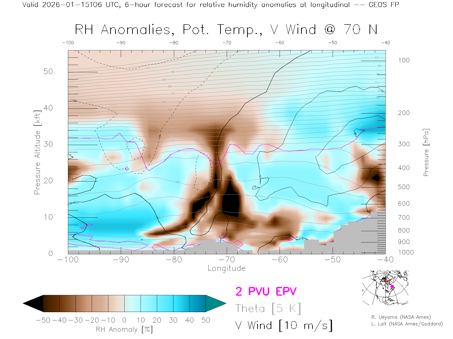 GEOS Forecast Rel. Hum. X-Section (70 N)