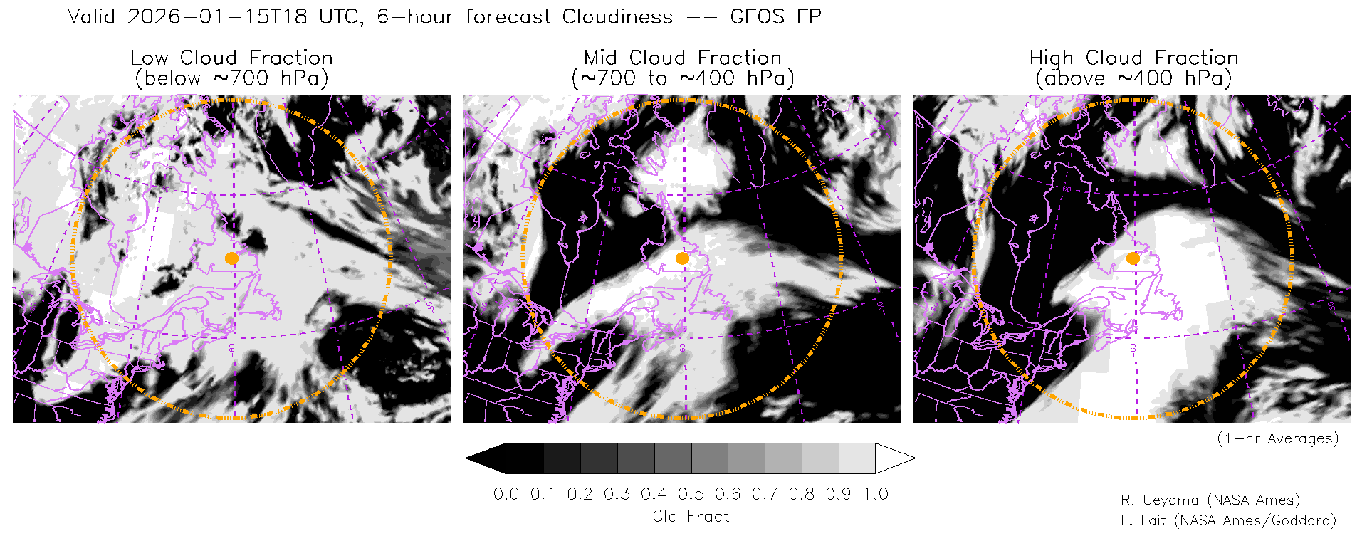 GEOS Forecast Cloud Fraction (High, Mid, Low)