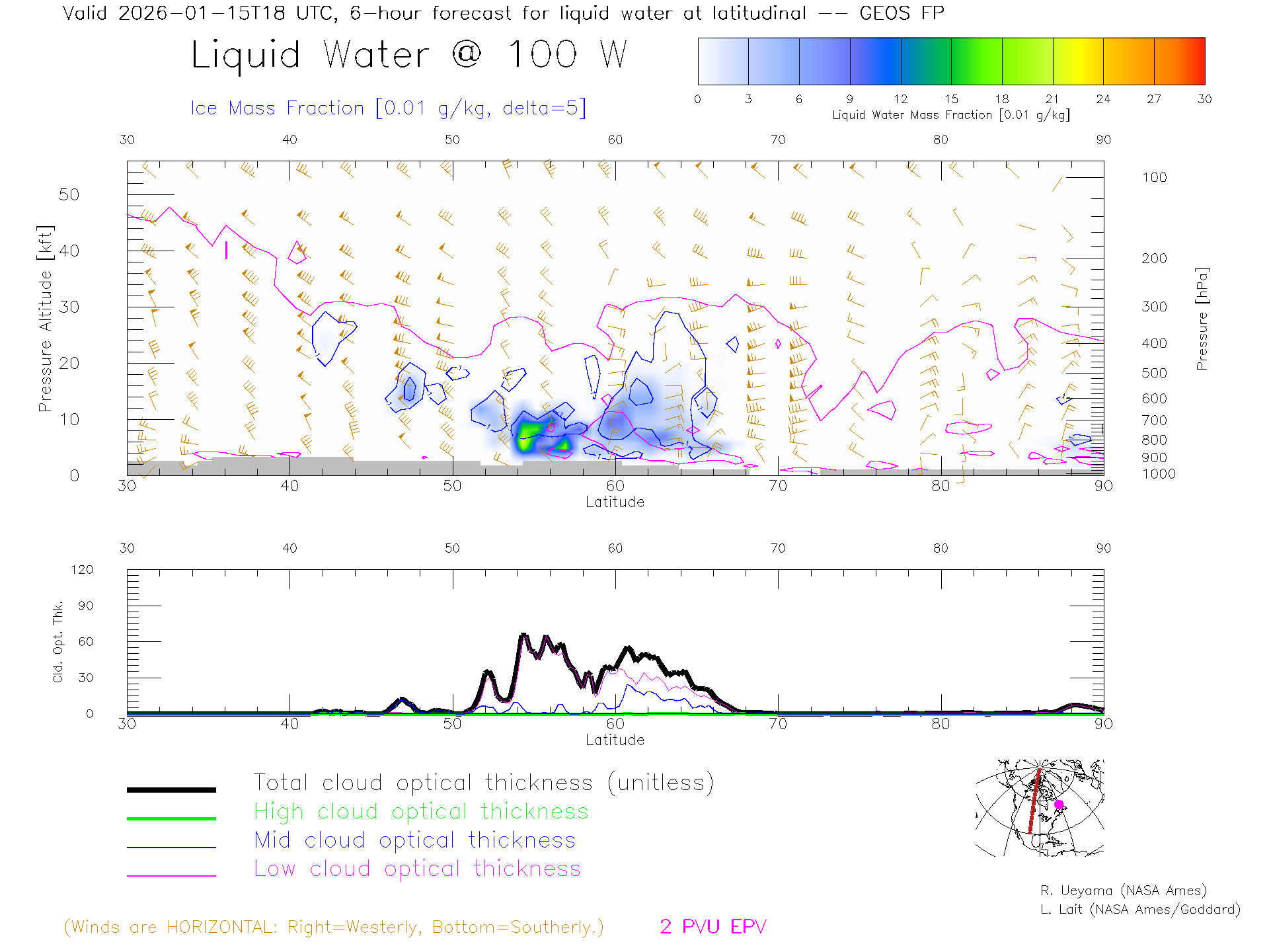 GEOS Forecast Cloud Water Content X-Section (100 W)