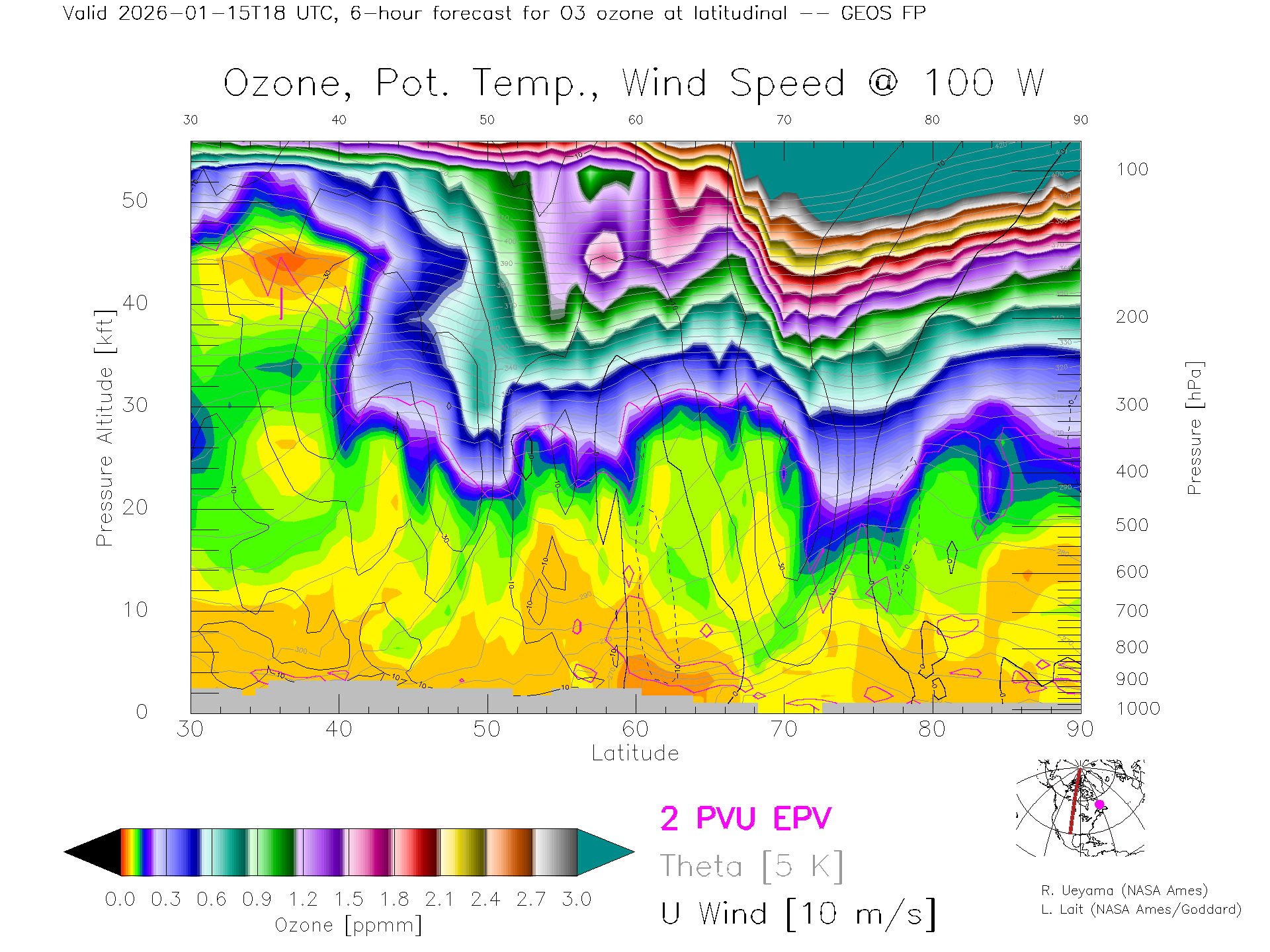 GEOS Forecast Ozone X-Section (100 W)