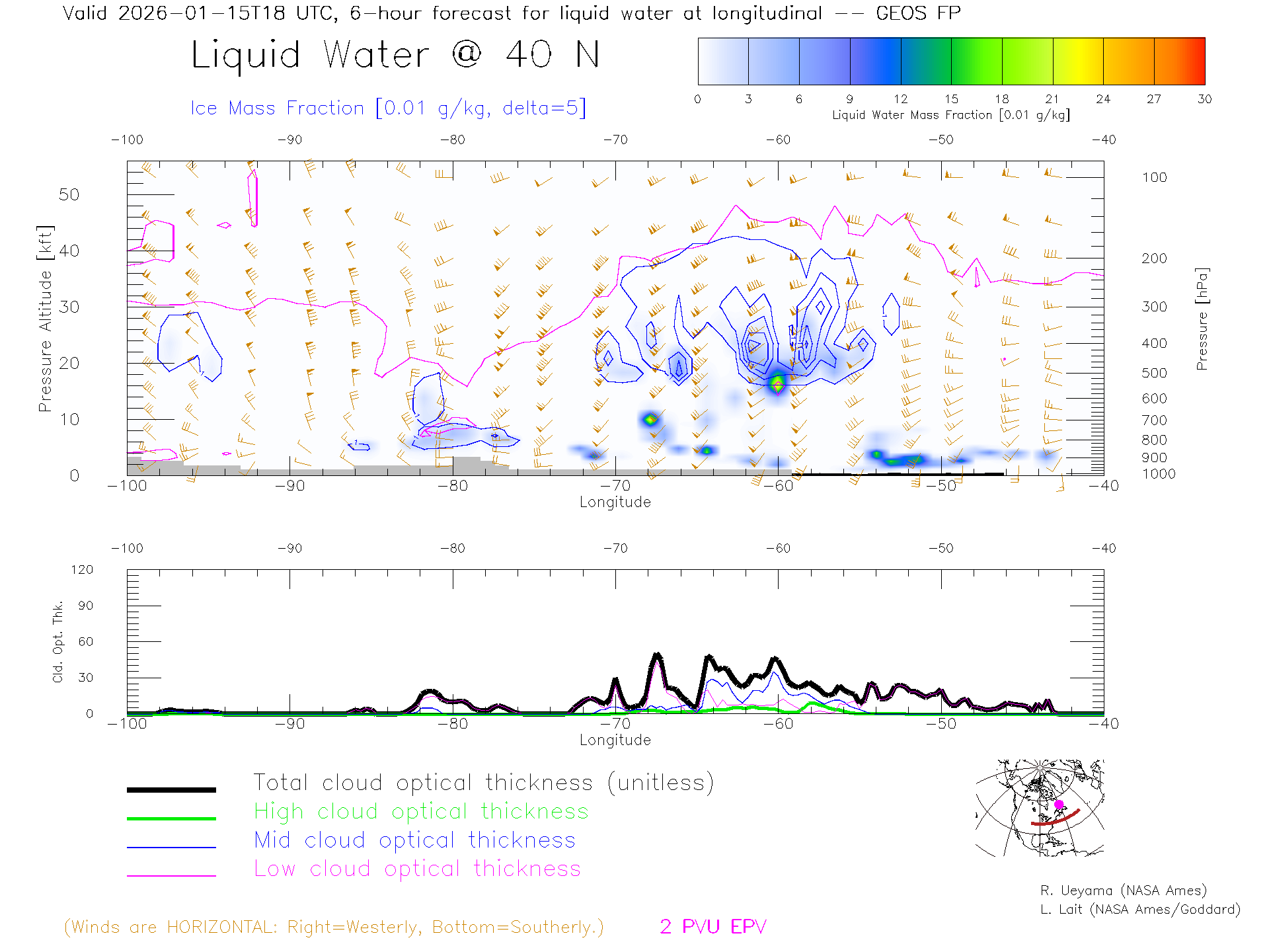 GEOS Forecast Cloud Water Content X-Section (40 N)