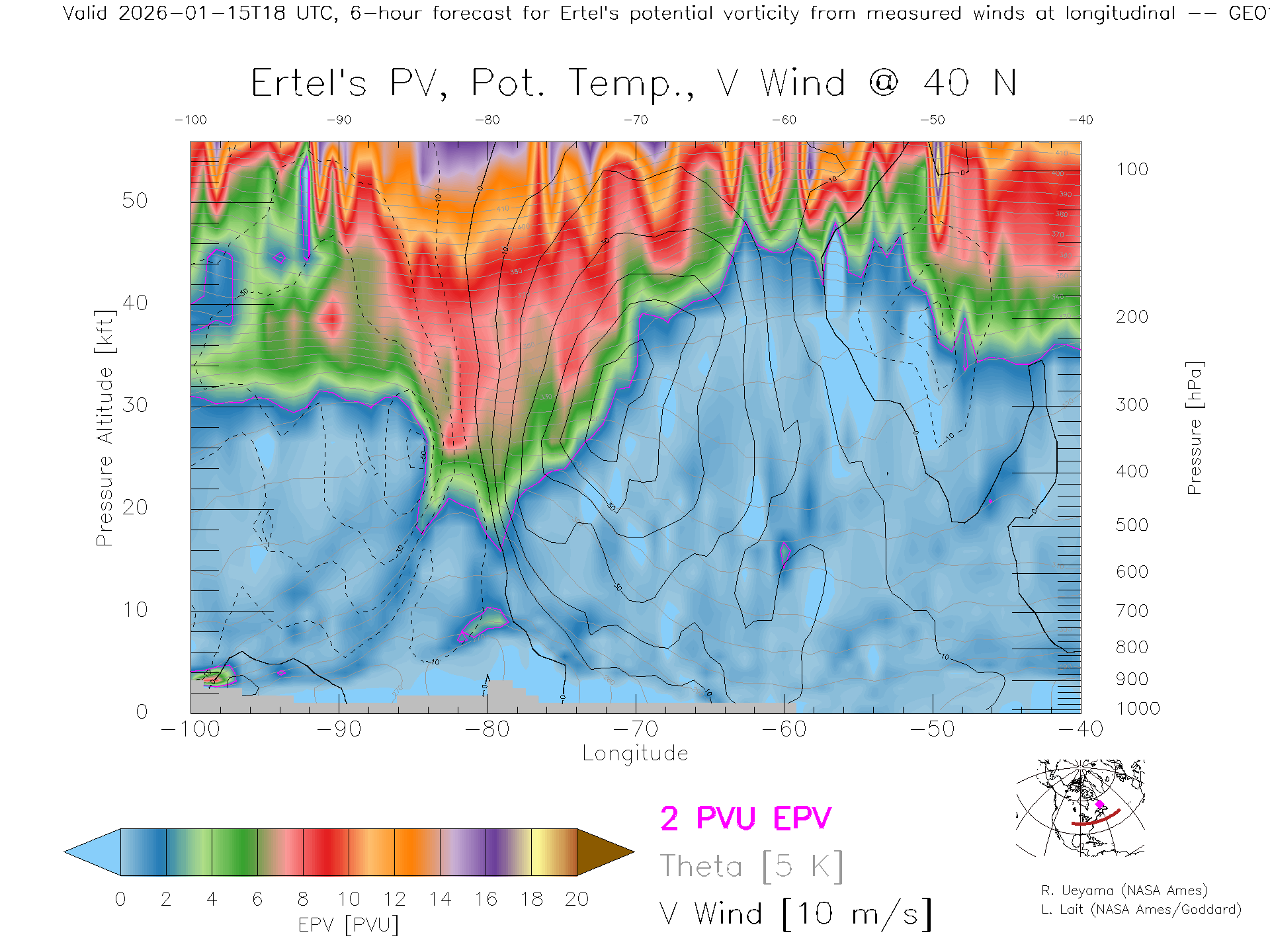 GEOS Forecast PV X-Section (40 N)