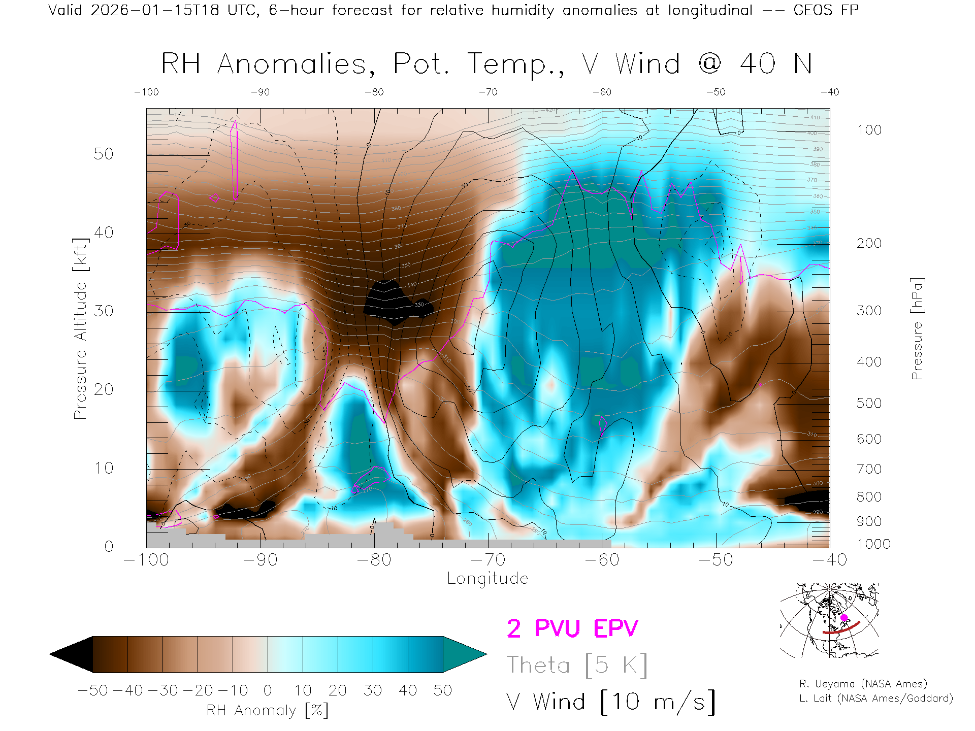 GEOS Forecast Rel. Hum. X-Section (40 N)