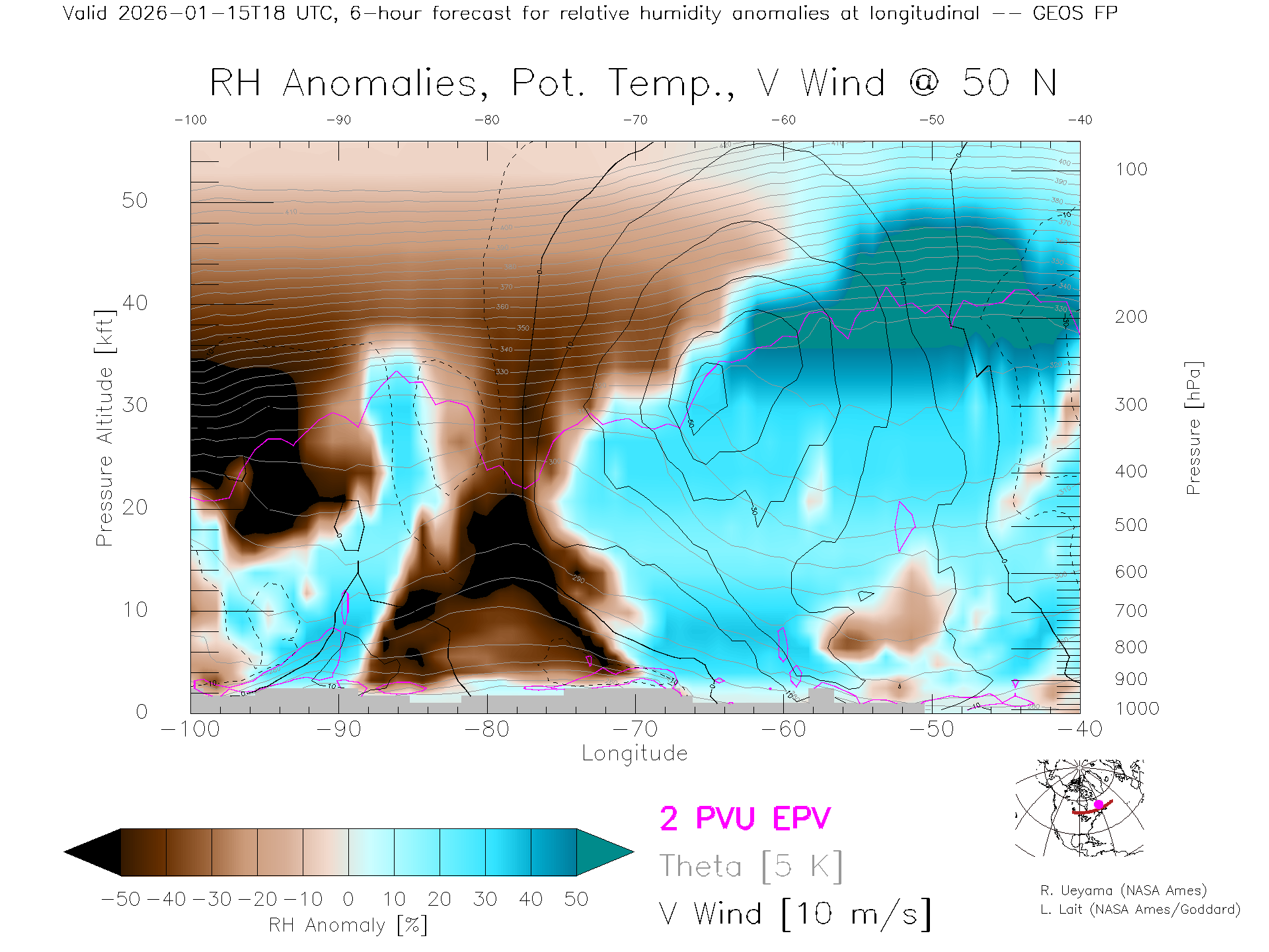 GEOS Forecast Rel. Hum. X-Section (50 N)