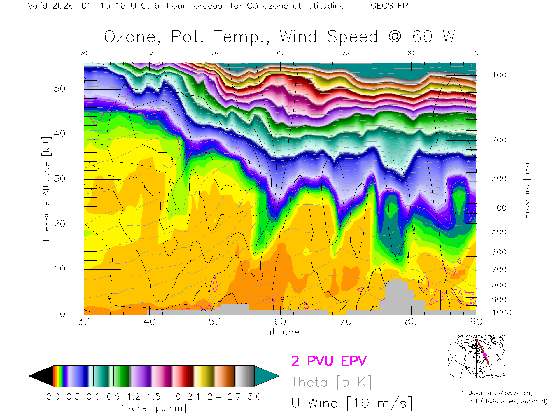 GEOS Forecast Ozone X-Section (60 W)