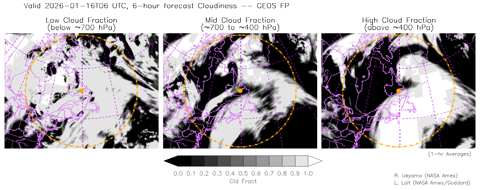 GEOS Forecast Cloud Fraction (High, Mid, Low)