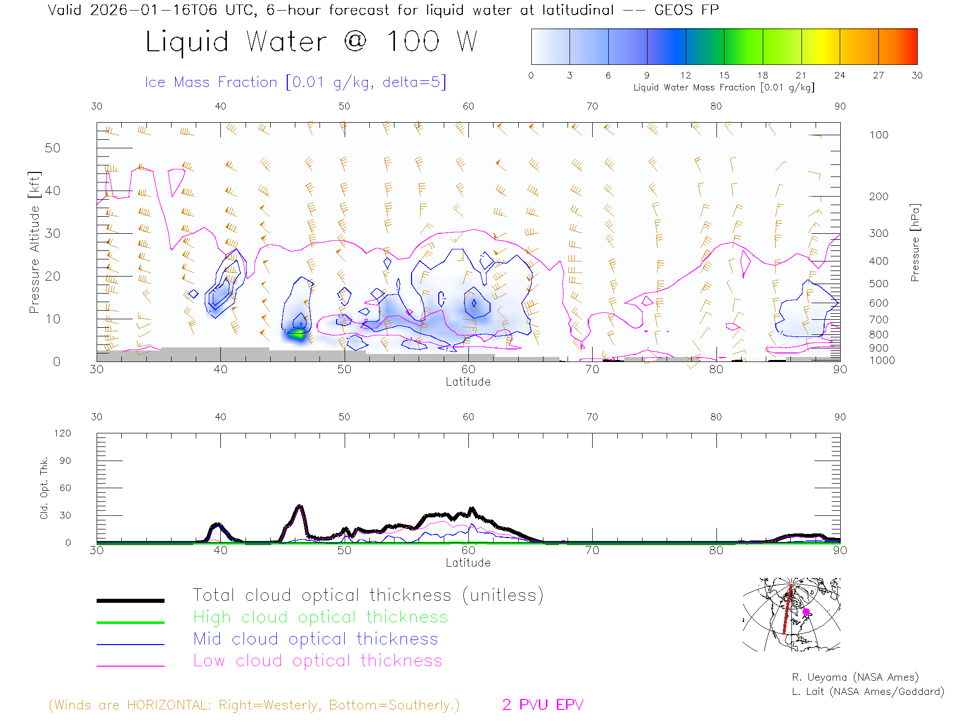 GEOS Forecast Cloud Water Content X-Section (100 W)