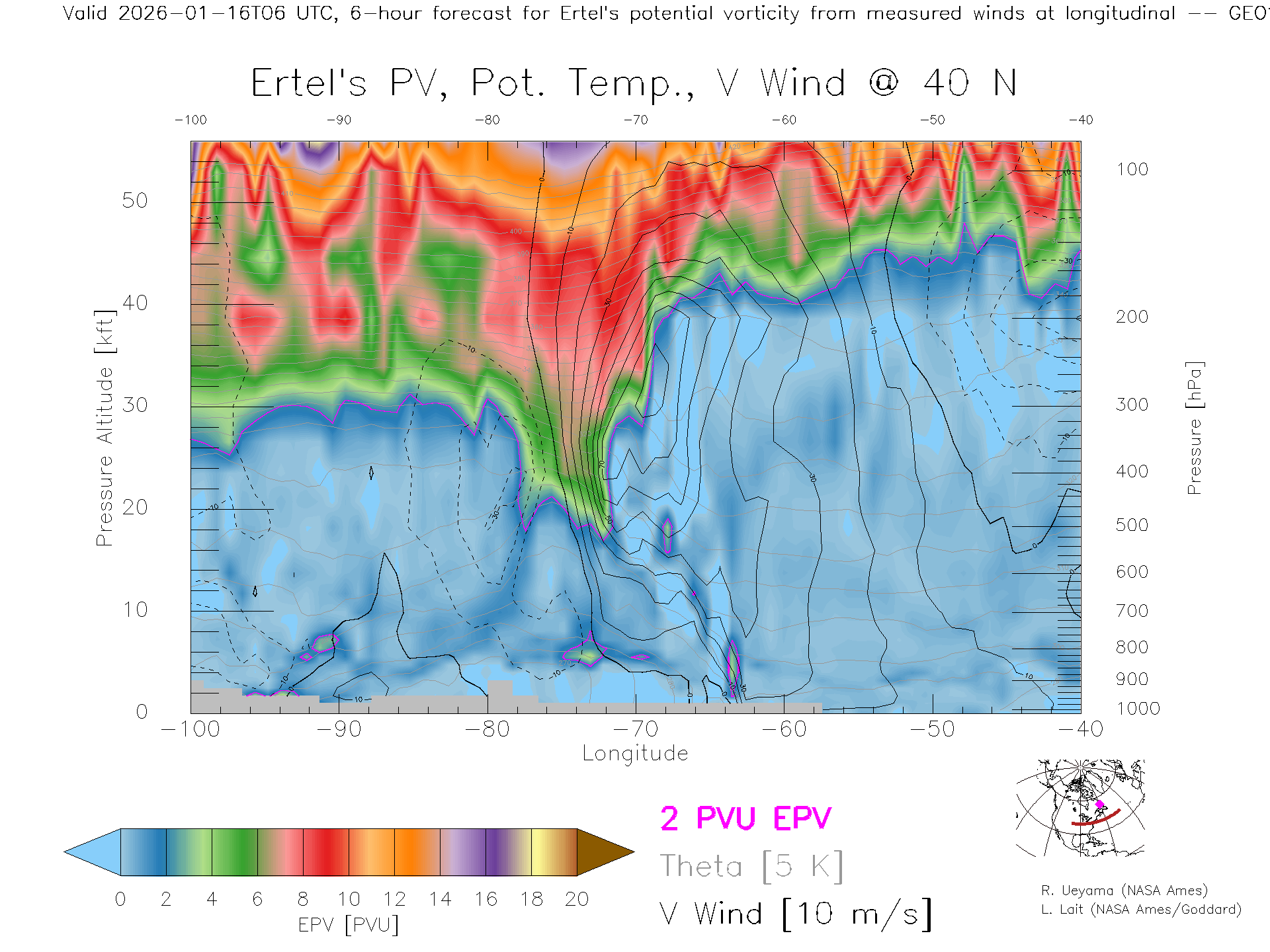 GEOS Forecast PV X-Section (40 N)