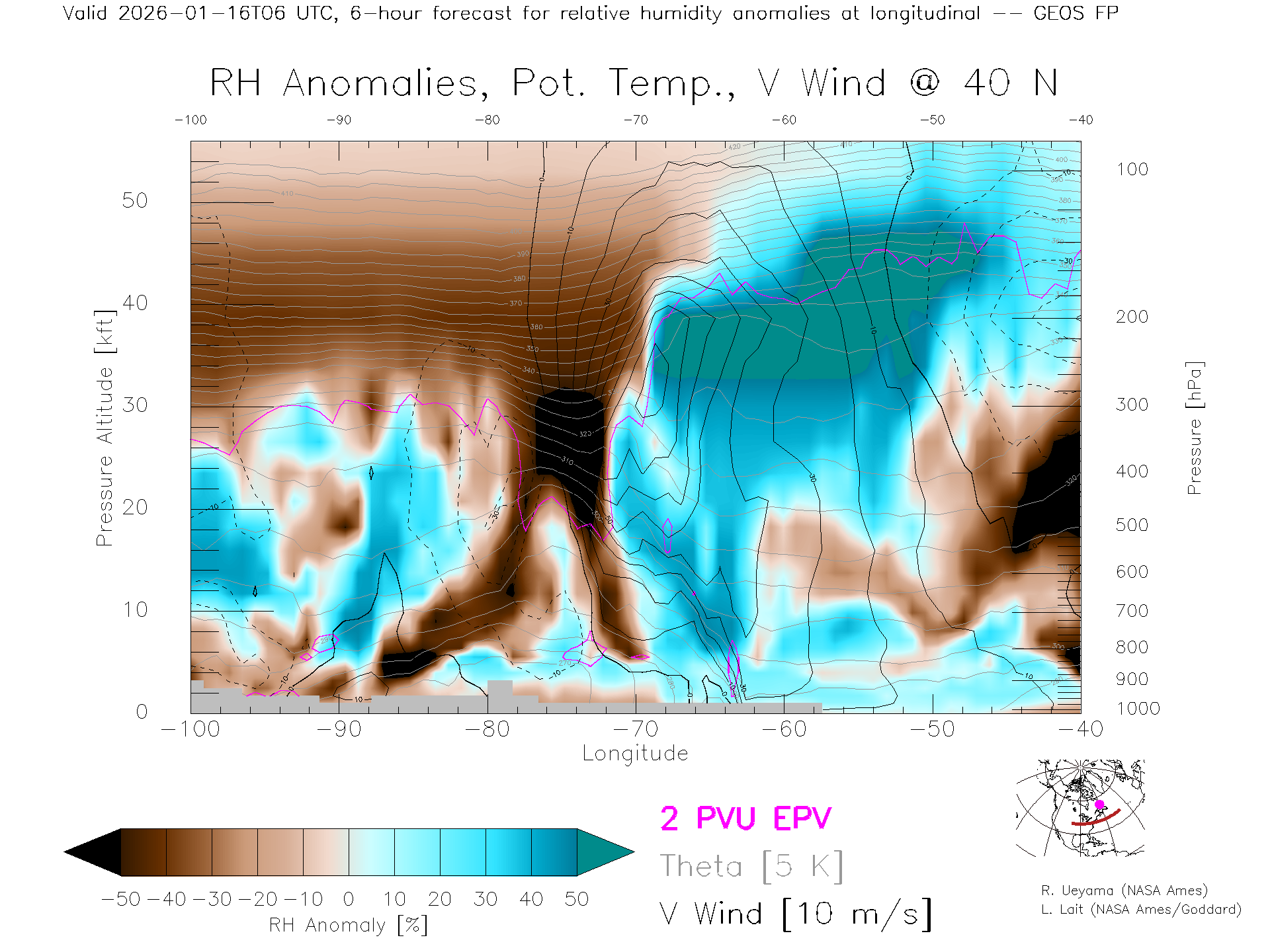 GEOS Forecast Rel. Hum. X-Section (40 N)