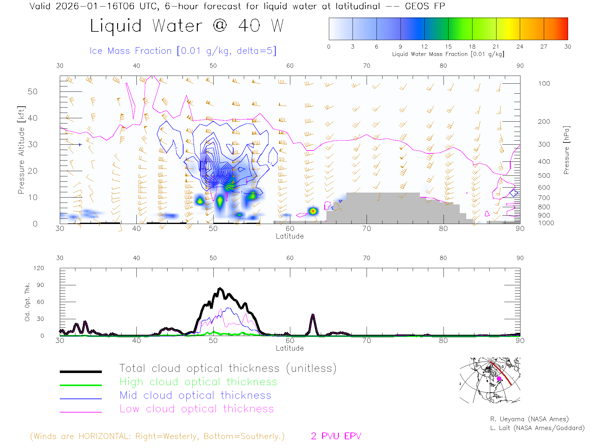 GEOS Forecast Cloud Water Content X-Section (40 W)