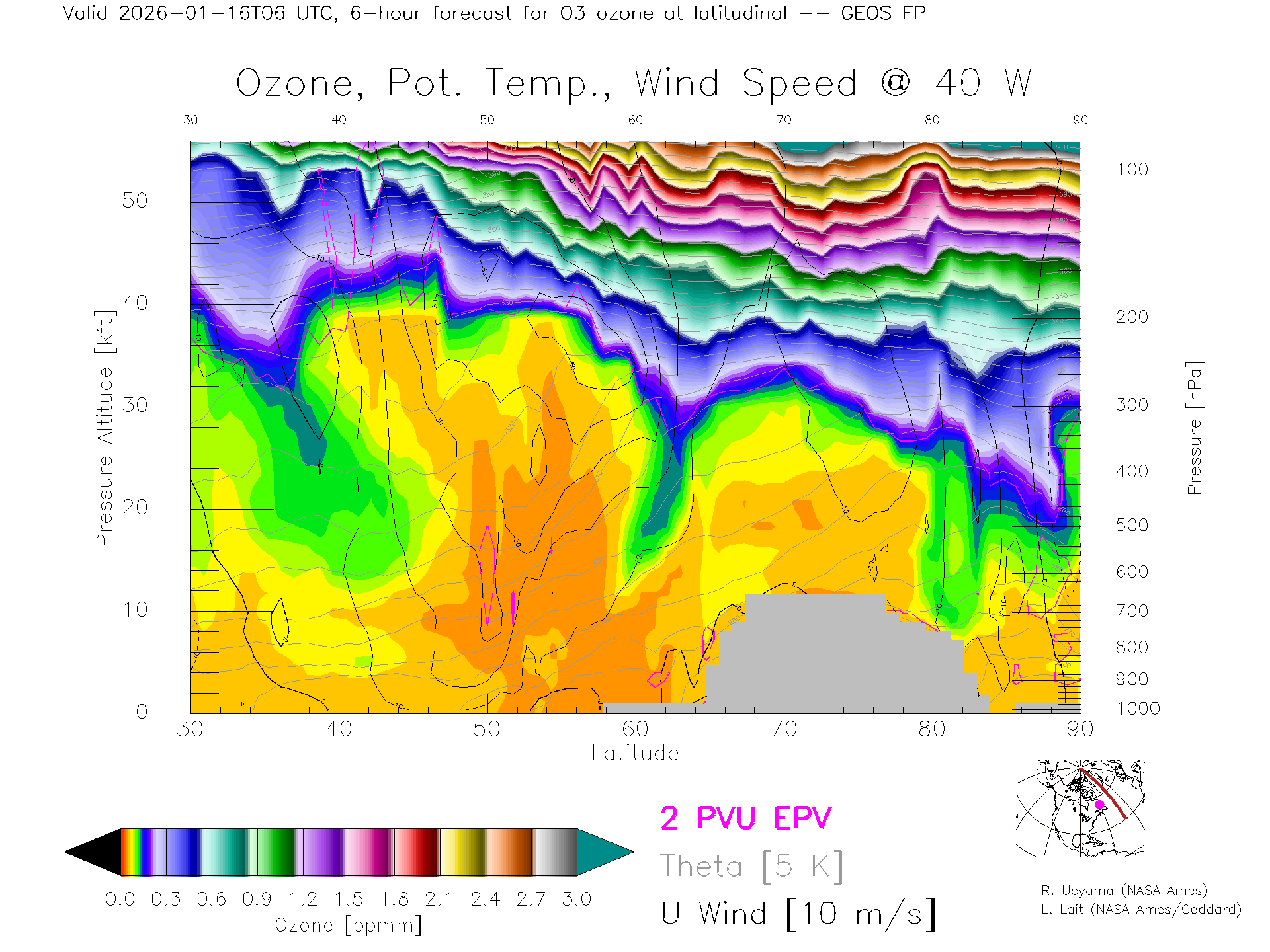 GEOS Forecast Ozone X-Section (40 W)