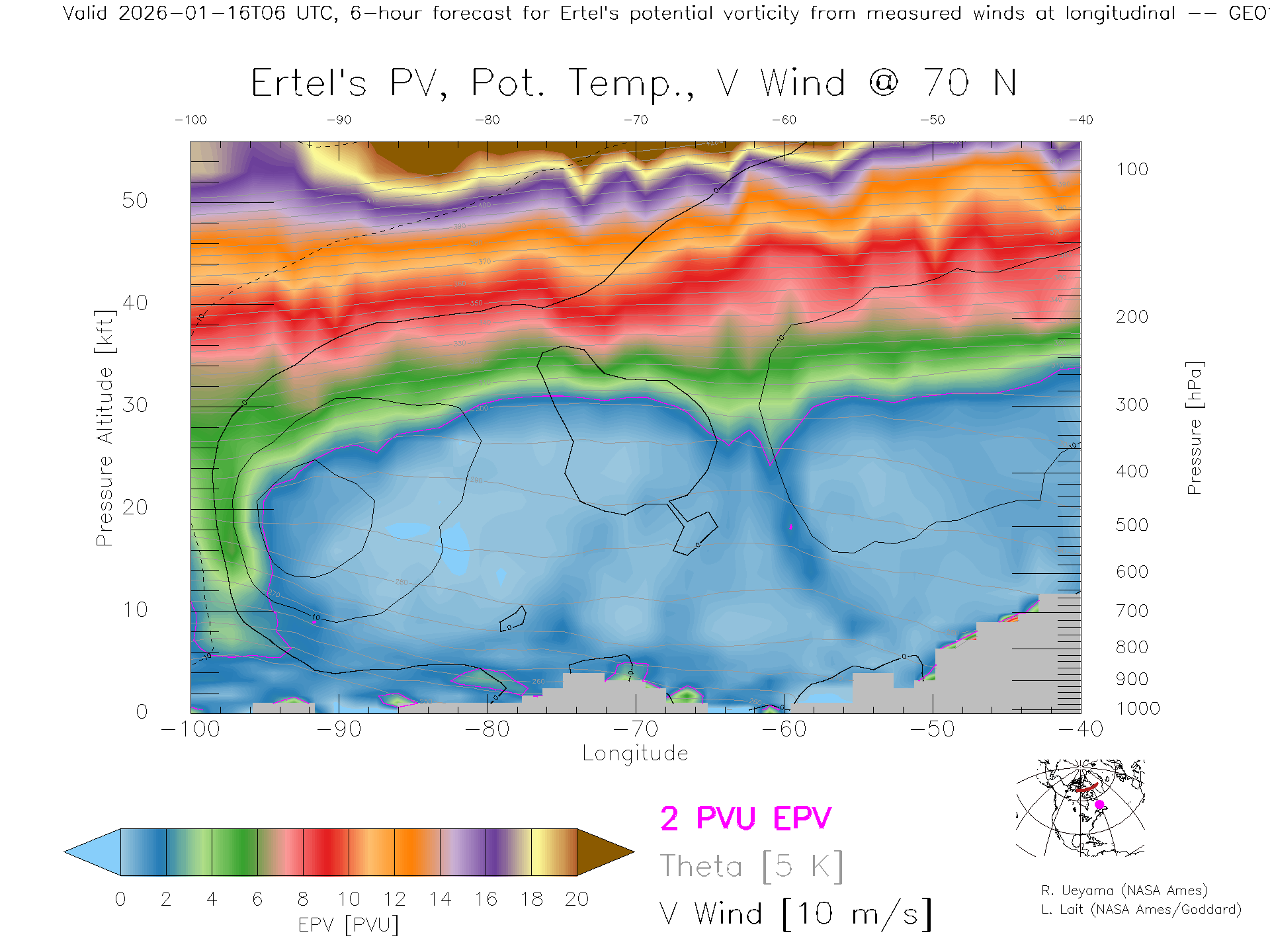GEOS Forecast PV X-Section (70 N)