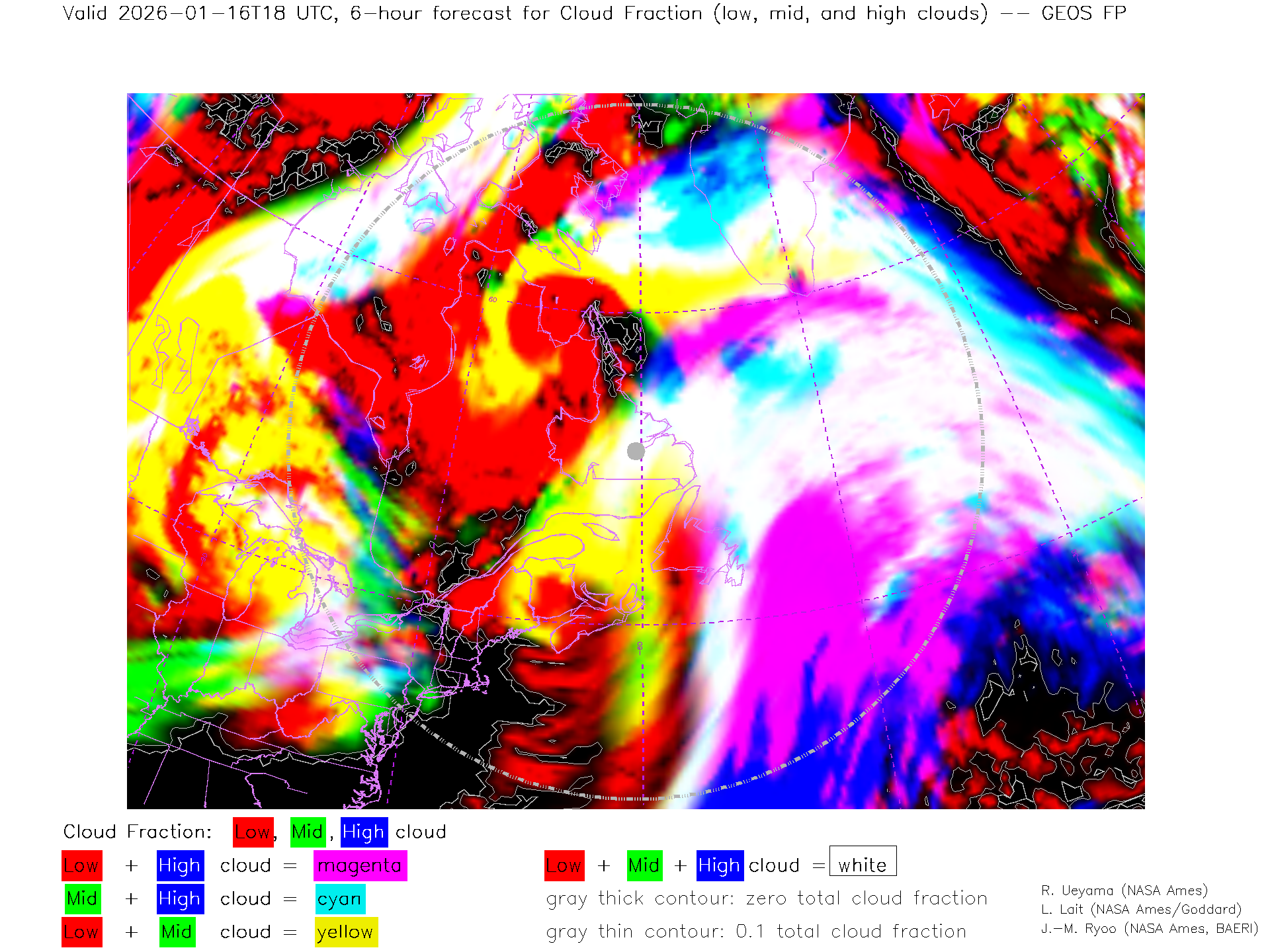 GEOS Forecast Low-, Mid- and High-level Cloud Fraction