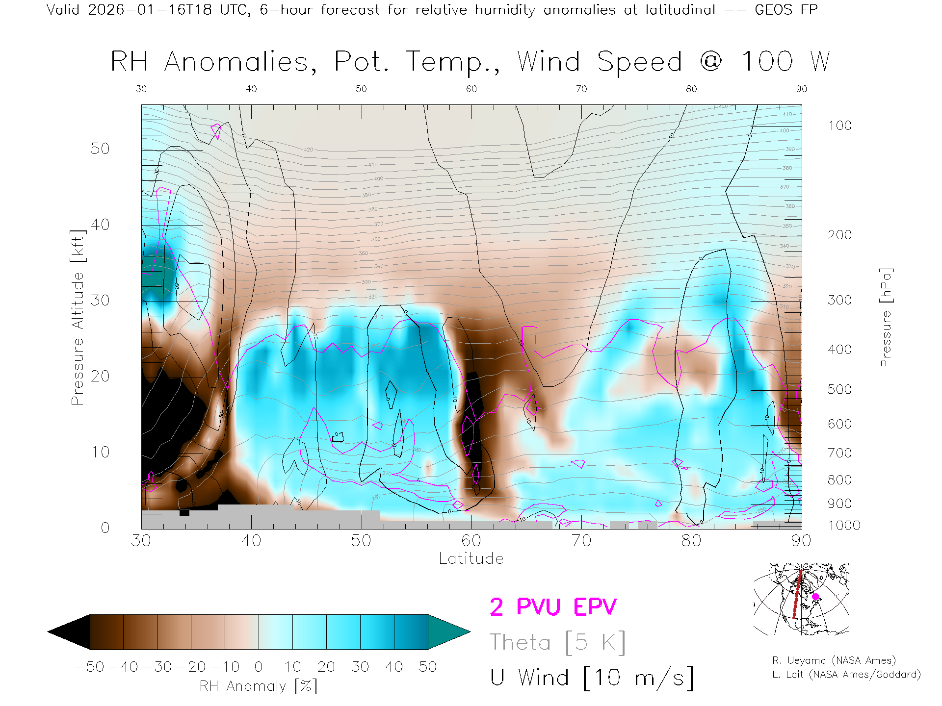 GEOS Forecast Rel. Hum. X-Section (100 W)