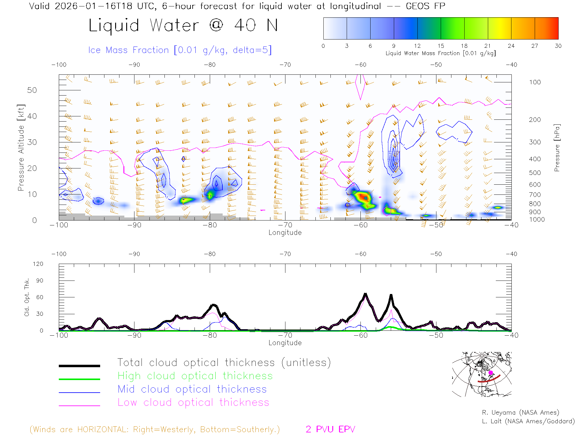 GEOS Forecast Cloud Water Content X-Section (40 N)
