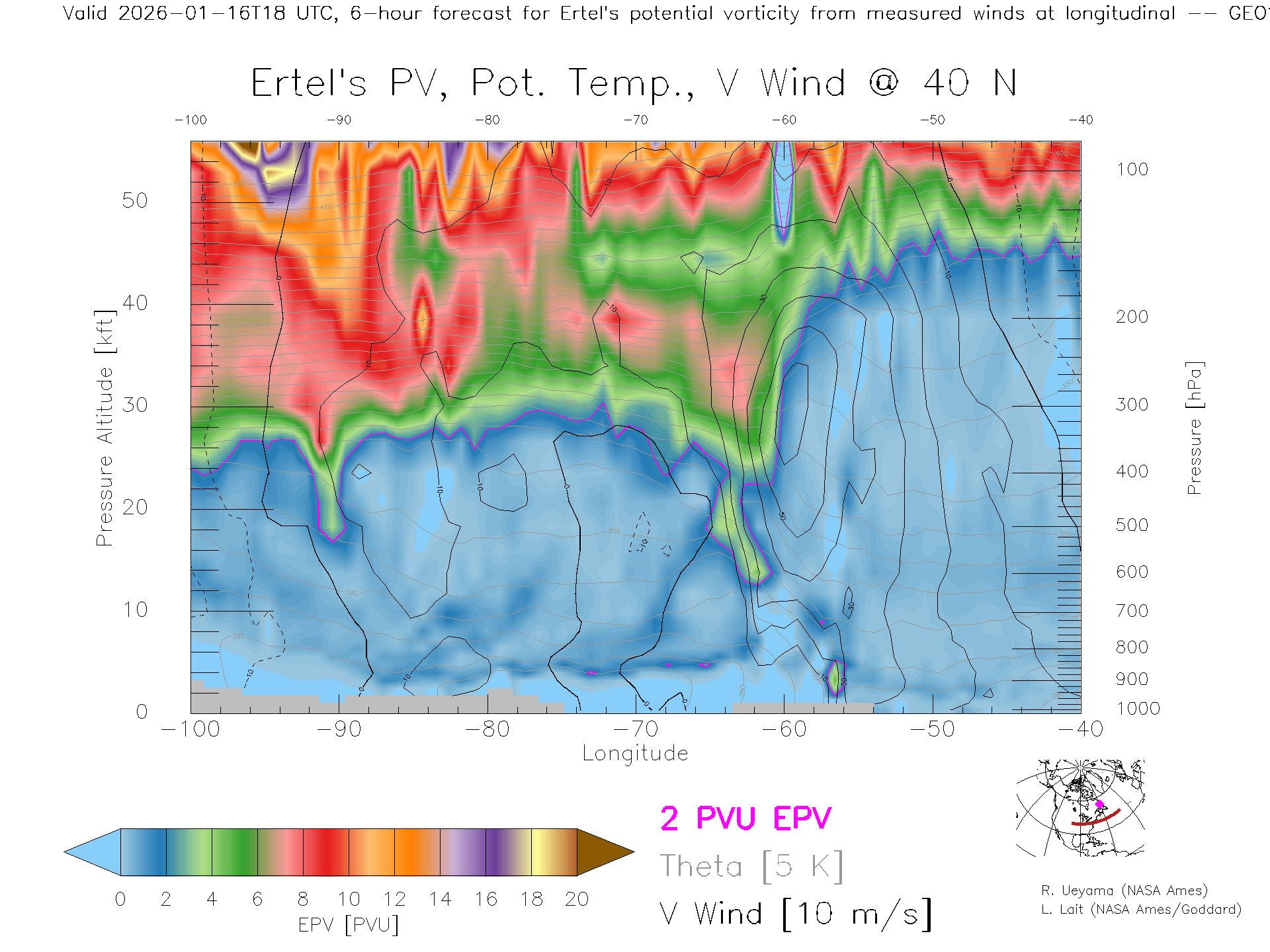 GEOS Forecast PV X-Section (40 N)
