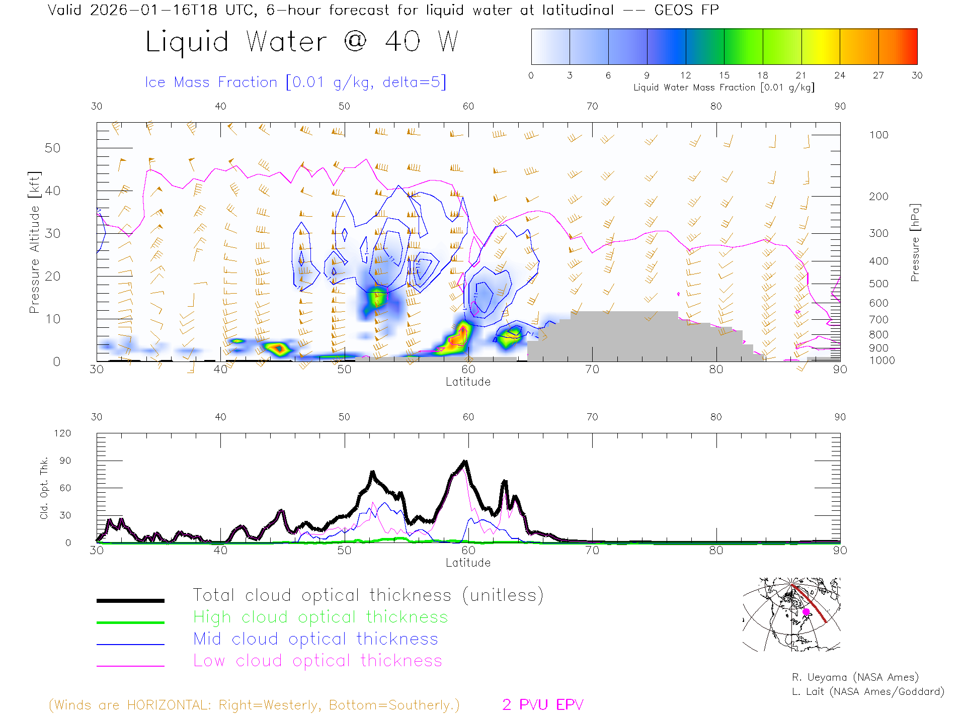 GEOS Forecast Cloud Water Content X-Section (40 W)