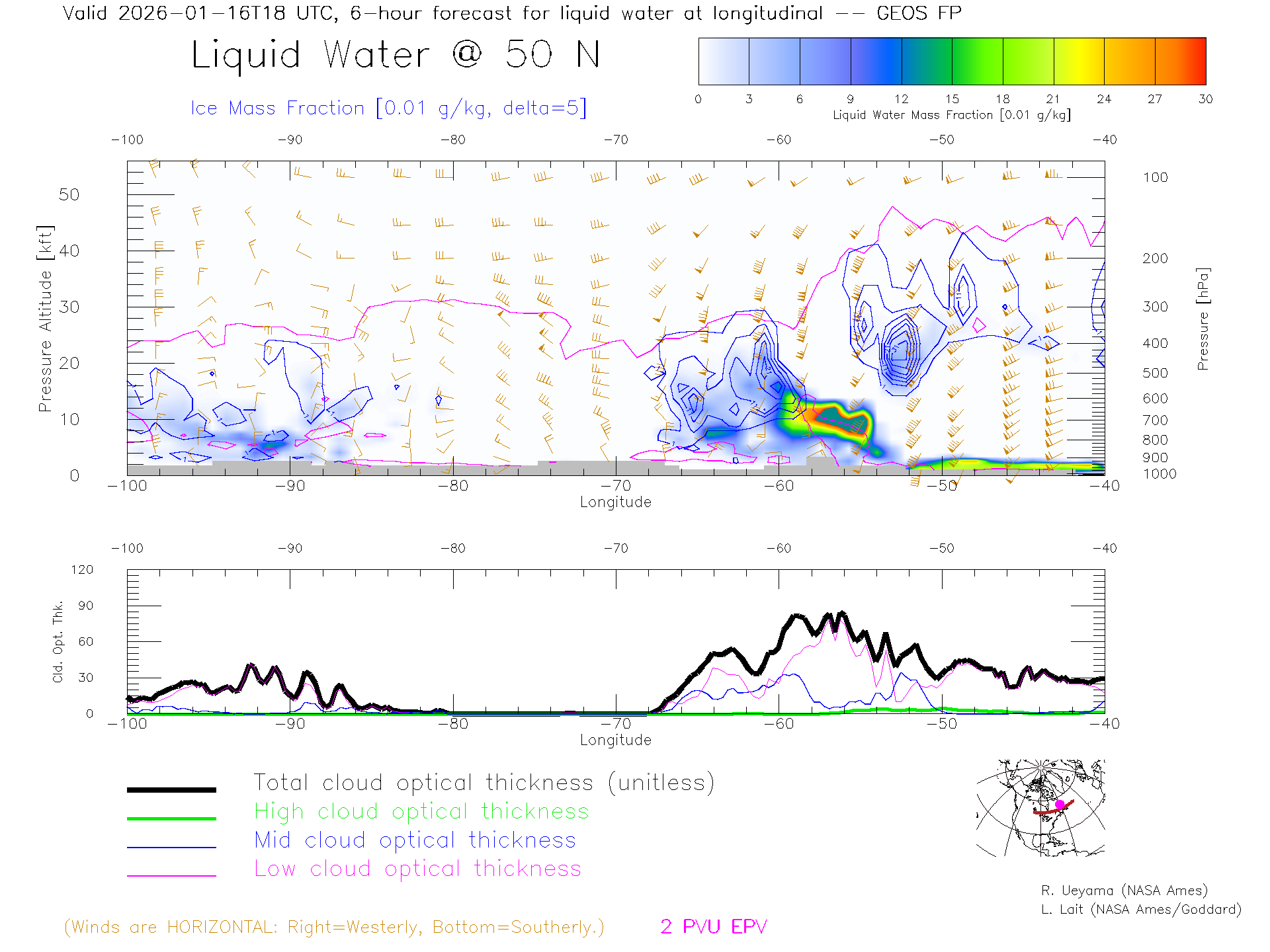 GEOS Forecast Cloud Water Content X-Section (50 N)