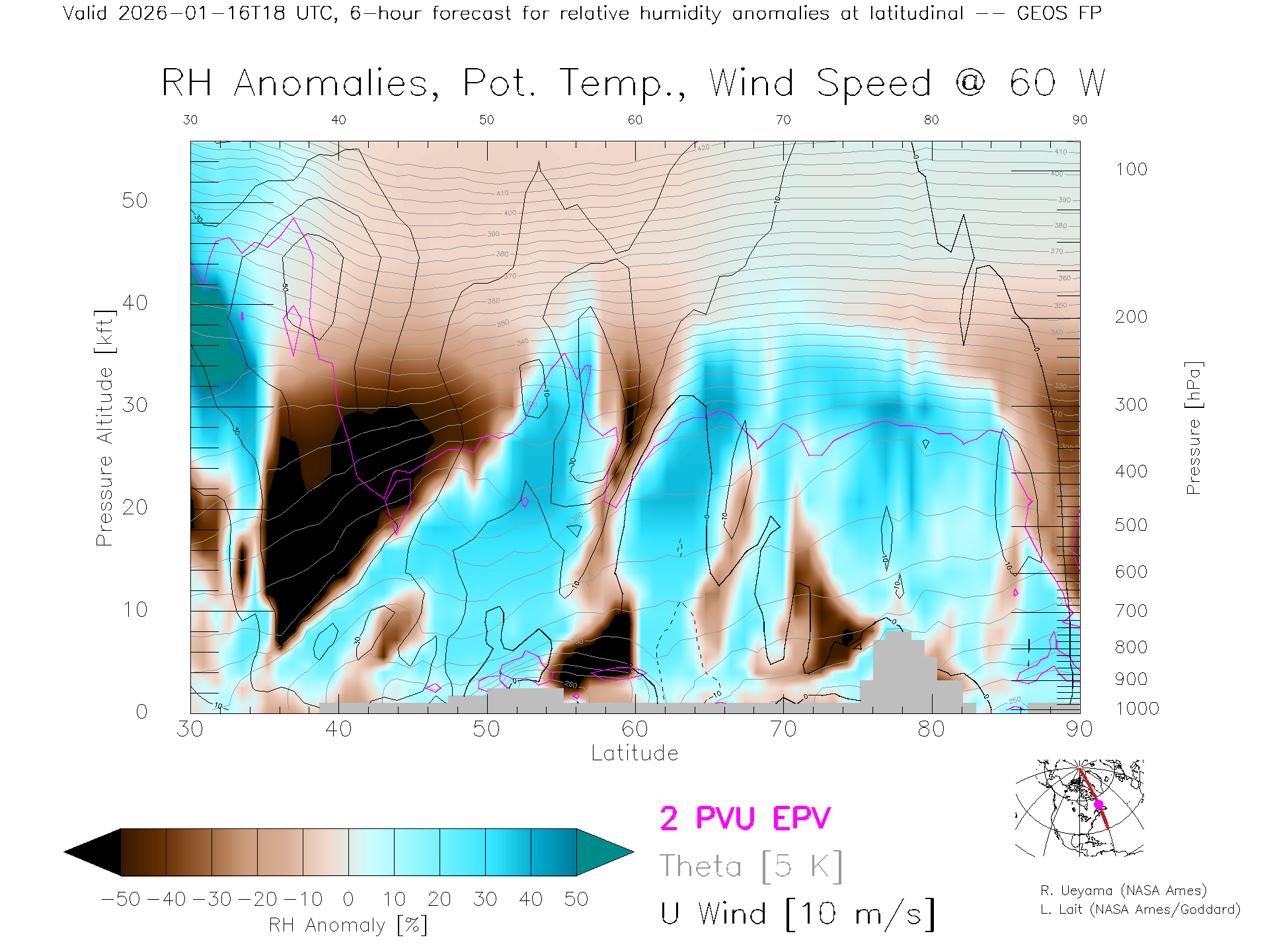 GEOS Forecast Rel. Hum. X-Section (60 W)