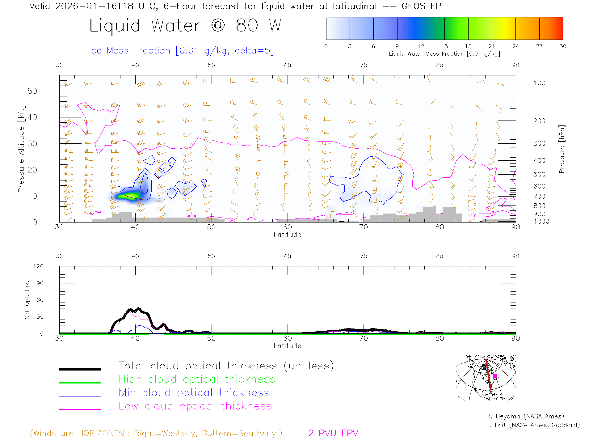 GEOS Forecast Cloud Water Content X-Section (80 W)