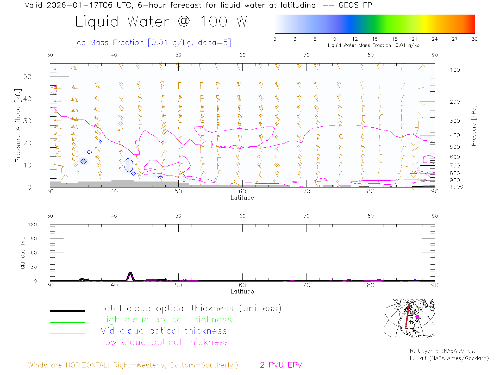 GEOS Forecast Cloud Water Content X-Section (100 W)