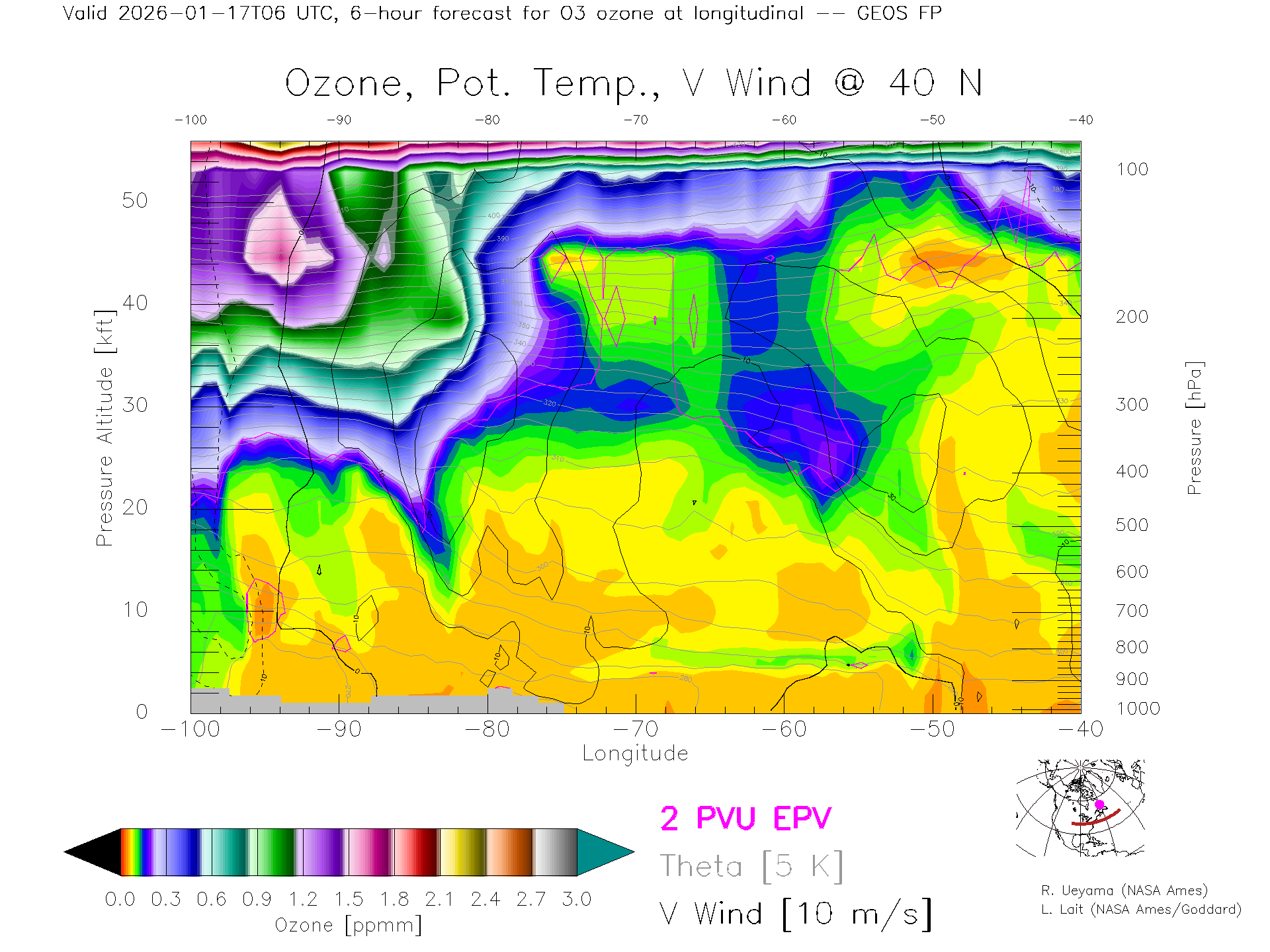 GEOS Forecast Ozone X-Section (40 N)
