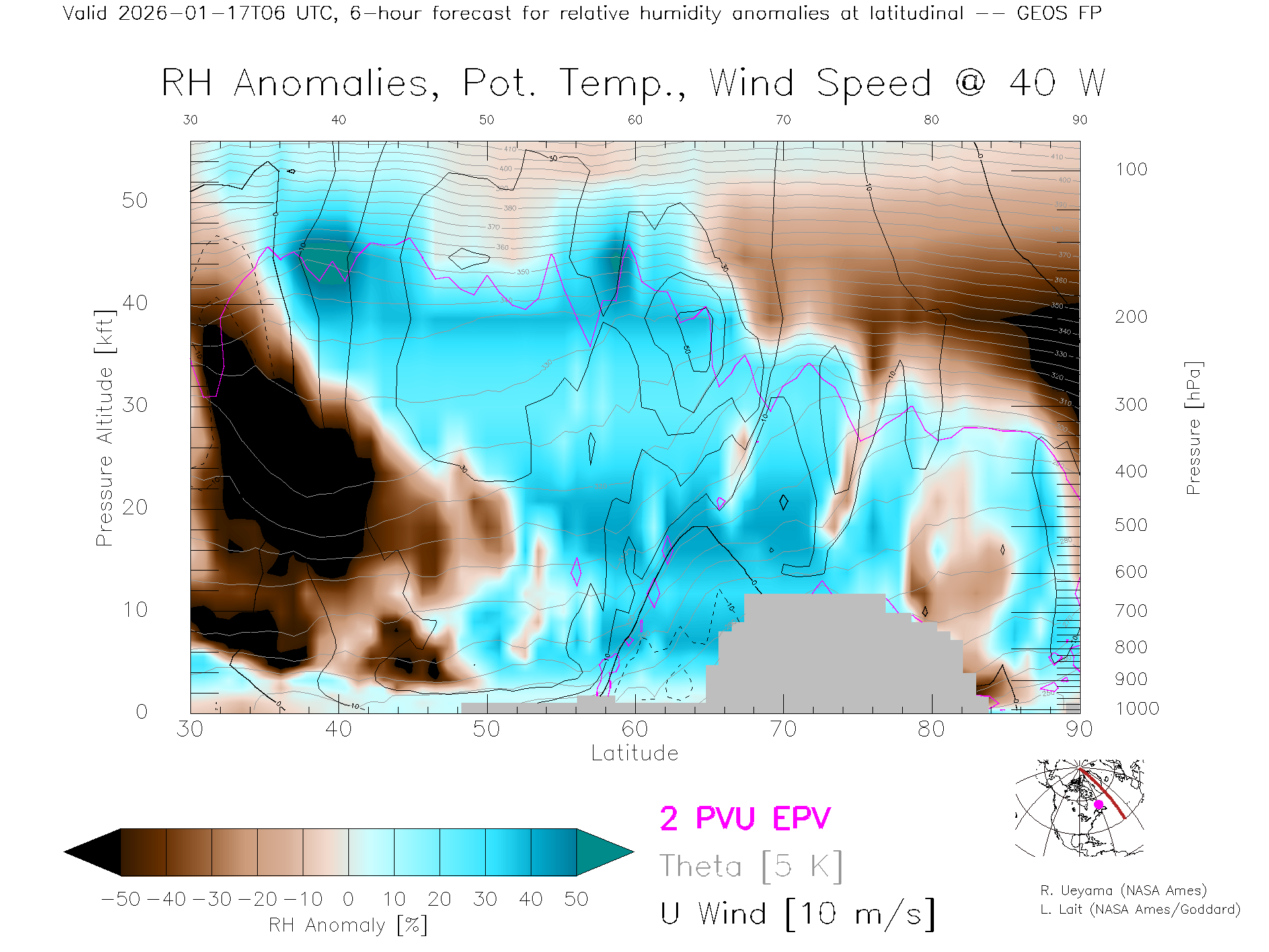 GEOS Forecast Rel. Hum. X-Section (40 W)