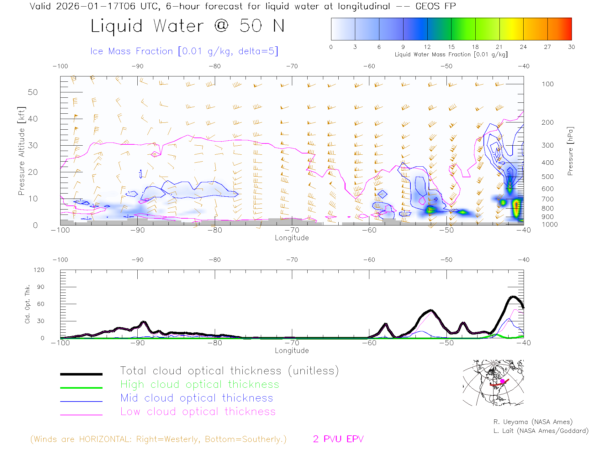 GEOS Forecast Cloud Water Content X-Section (50 N)