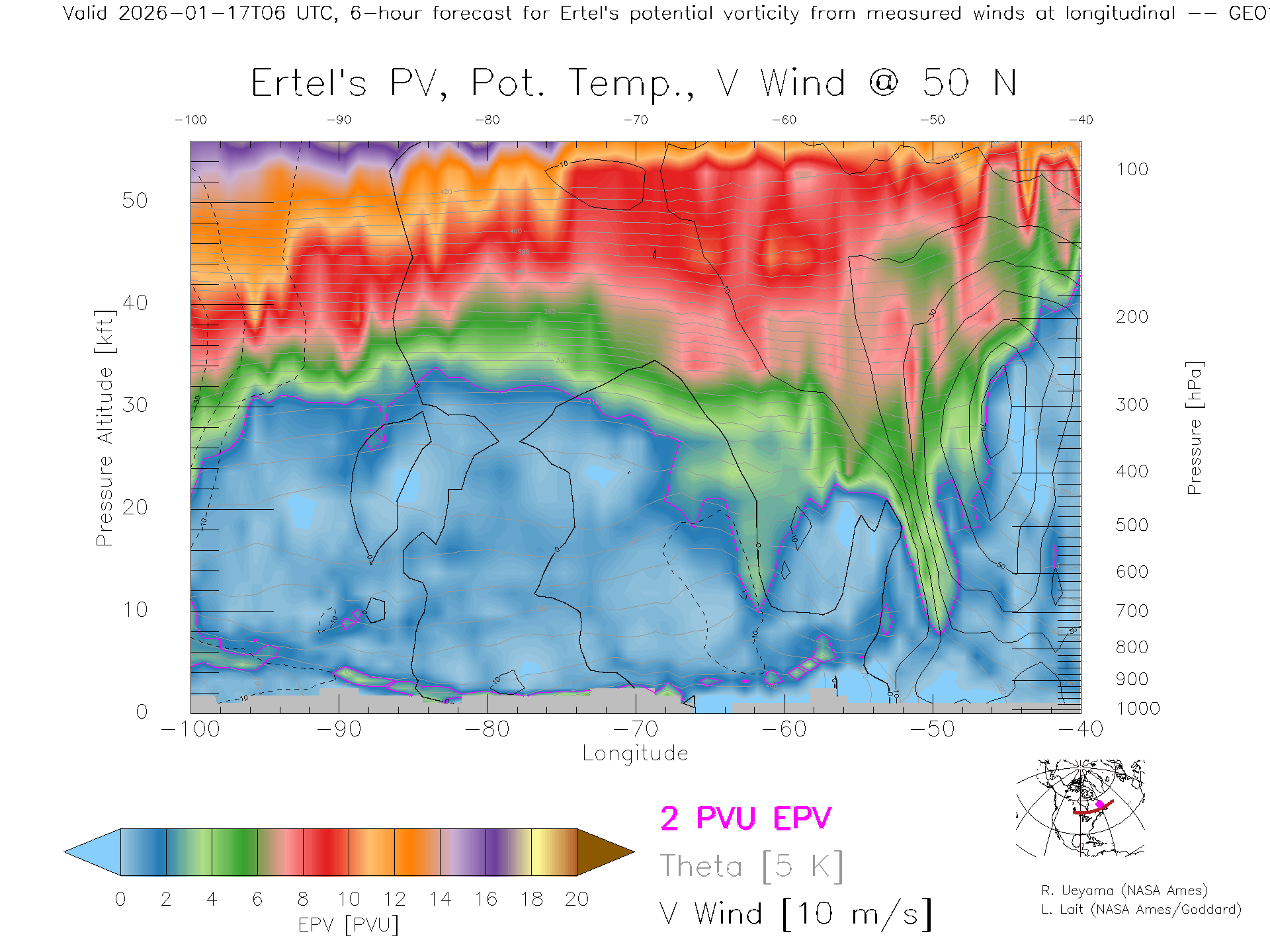 GEOS Forecast PV X-Section (50 N)