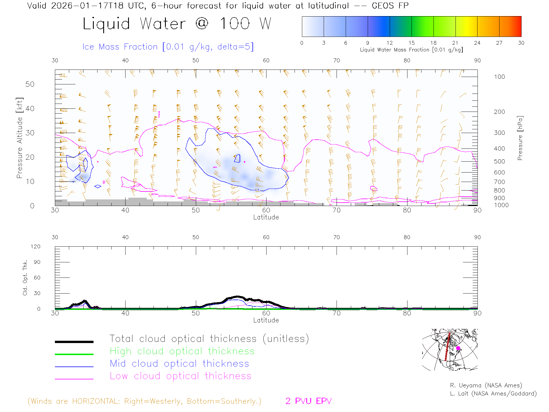 GEOS Forecast Cloud Water Content X-Section (100 W)