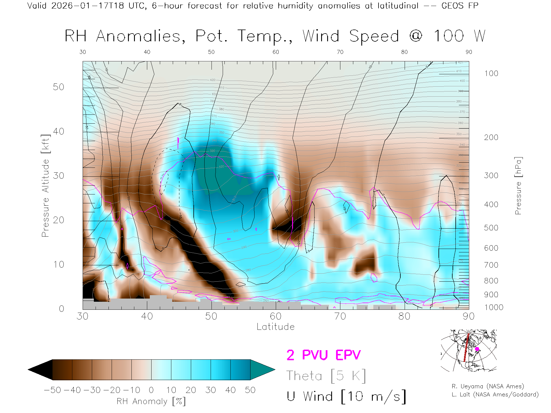 GEOS Forecast Rel. Hum. X-Section (100 W)