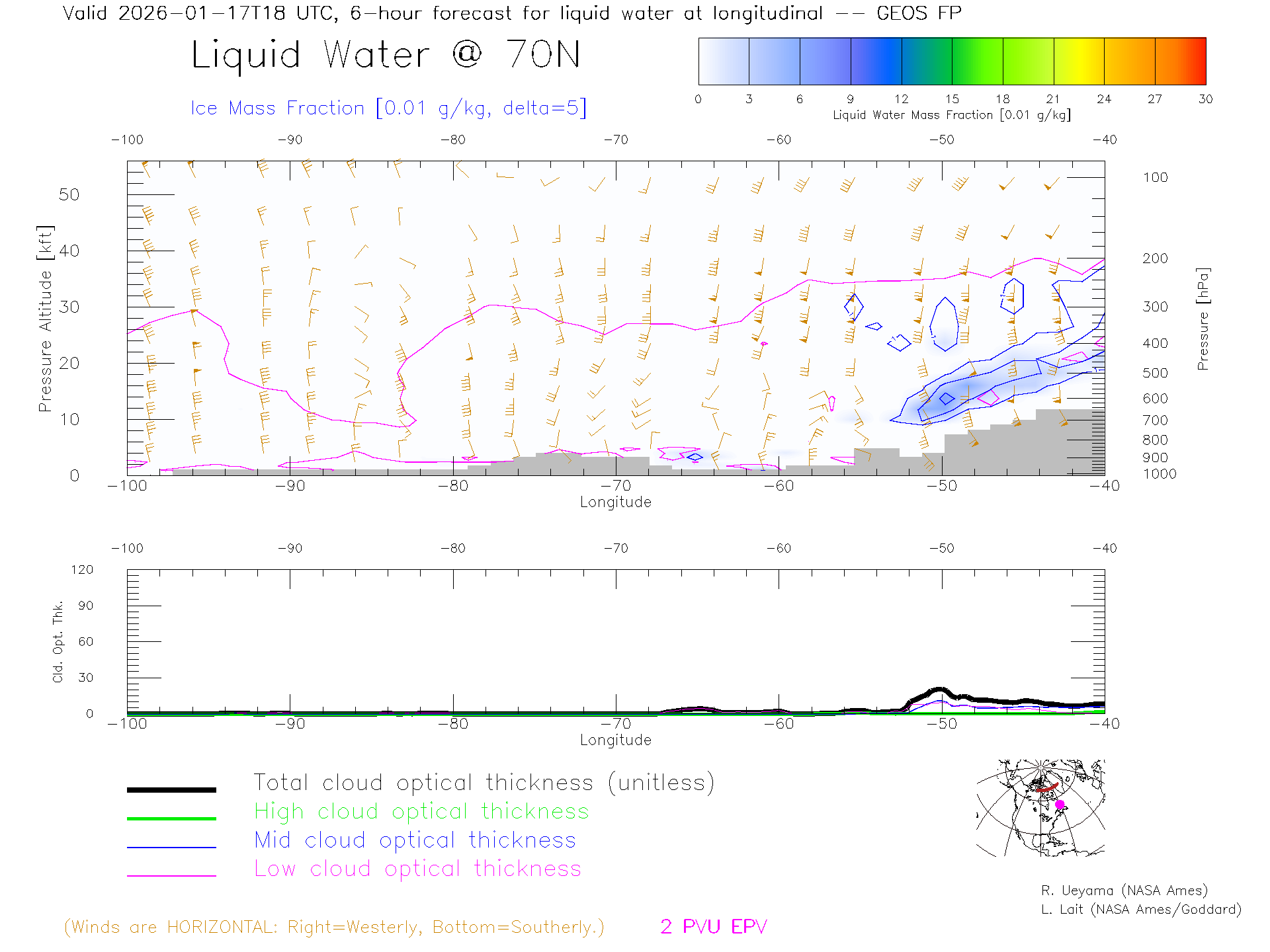 GEOS Forecast Cloud Water Content X-Section (70 N)