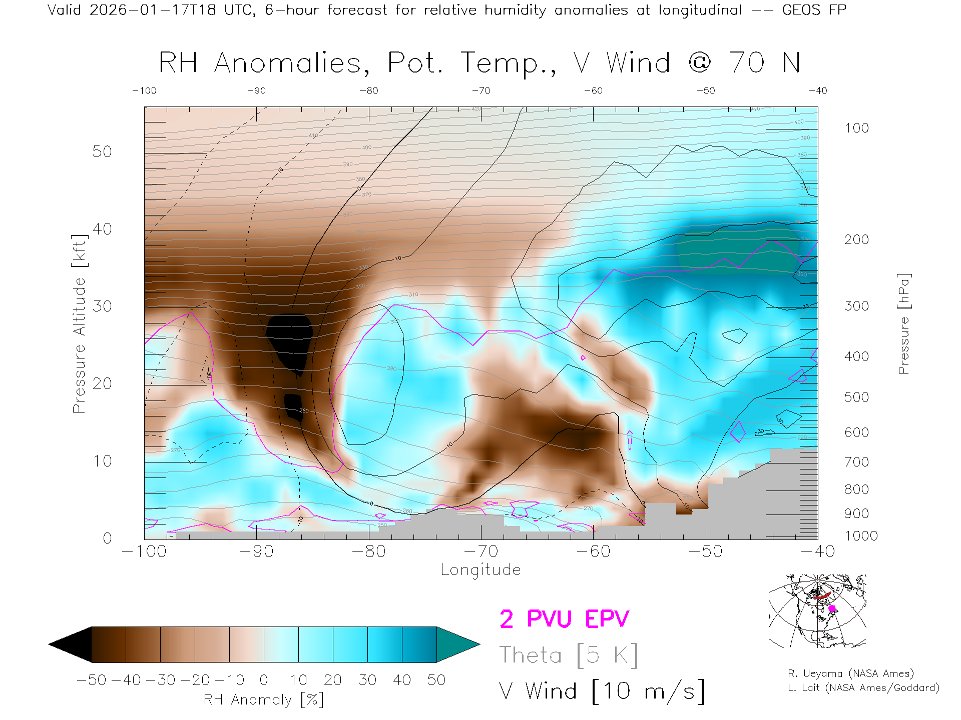 GEOS Forecast Rel. Hum. X-Section (70 N)