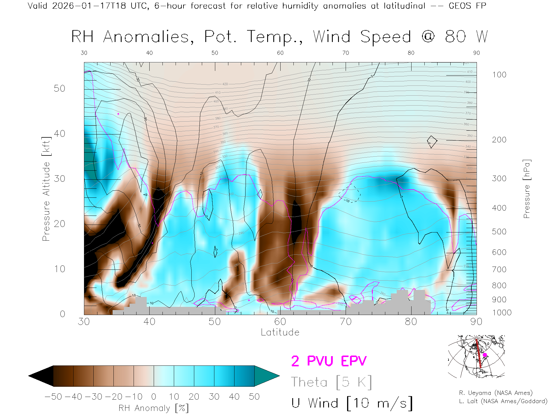 GEOS Forecast Rel. Hum. X-Section (80 W)