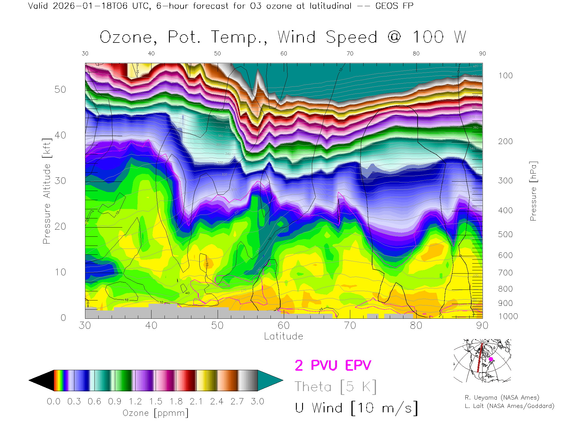 GEOS Forecast Ozone X-Section (100 W)