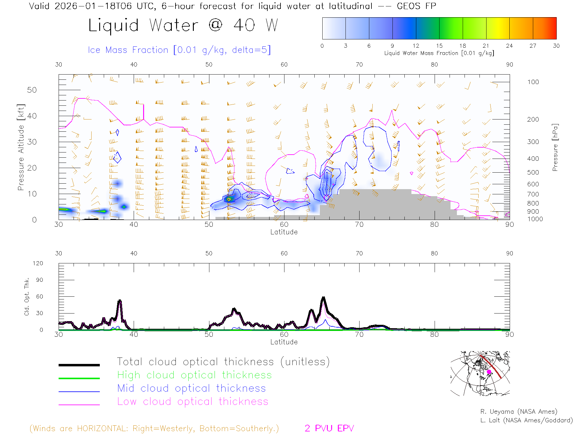GEOS Forecast Cloud Water Content X-Section (40 W)