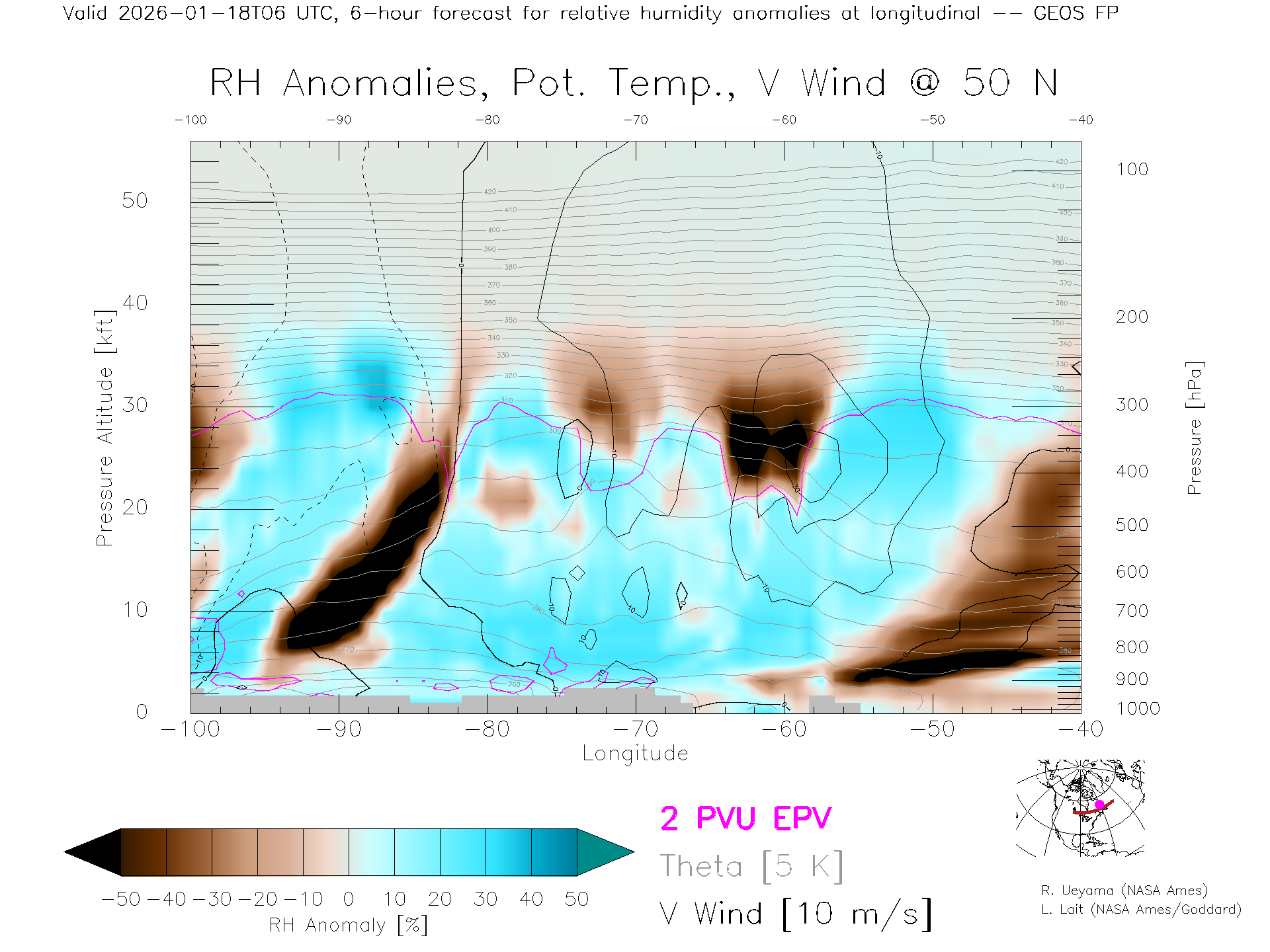 GEOS Forecast Rel. Hum. X-Section (50 N)