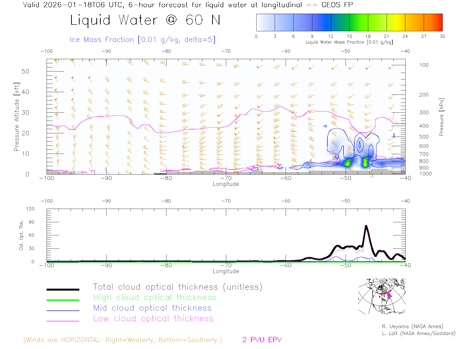 GEOS Forecast Cloud Water Content X-Section (60 N)