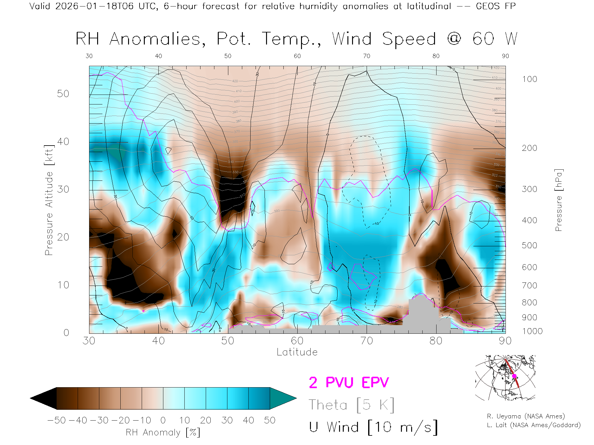 GEOS Forecast Rel. Hum. X-Section (60 W)