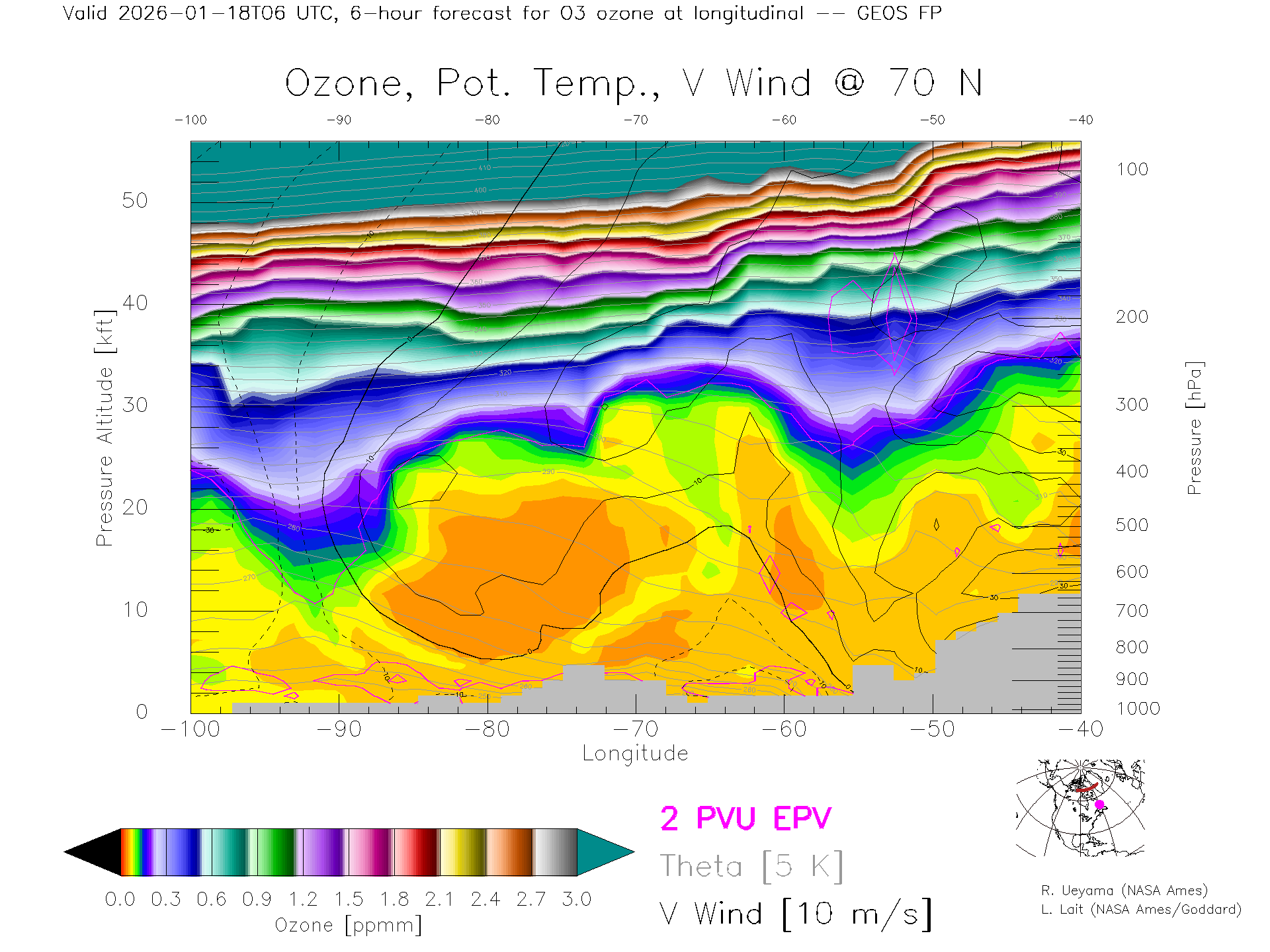 GEOS Forecast Ozone X-Section (70 N)