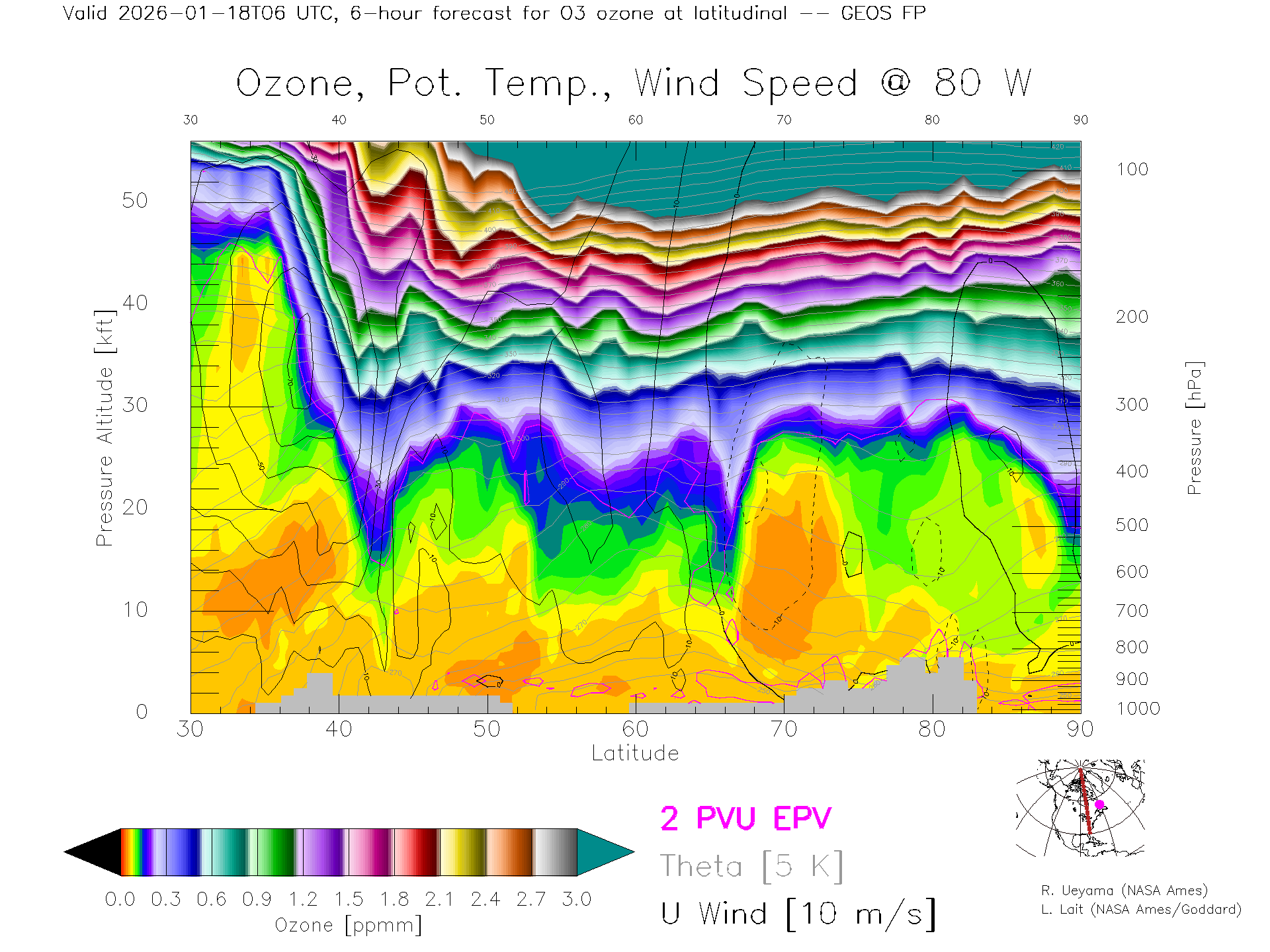 GEOS Forecast Ozone X-Section (80 W)