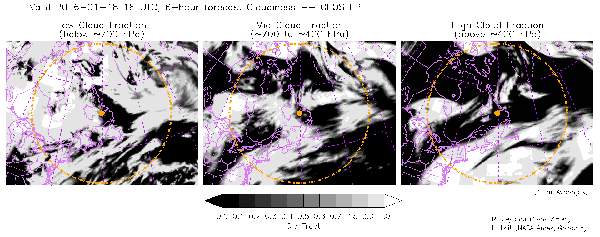 GEOS Forecast Cloud Fraction (High, Mid, Low)