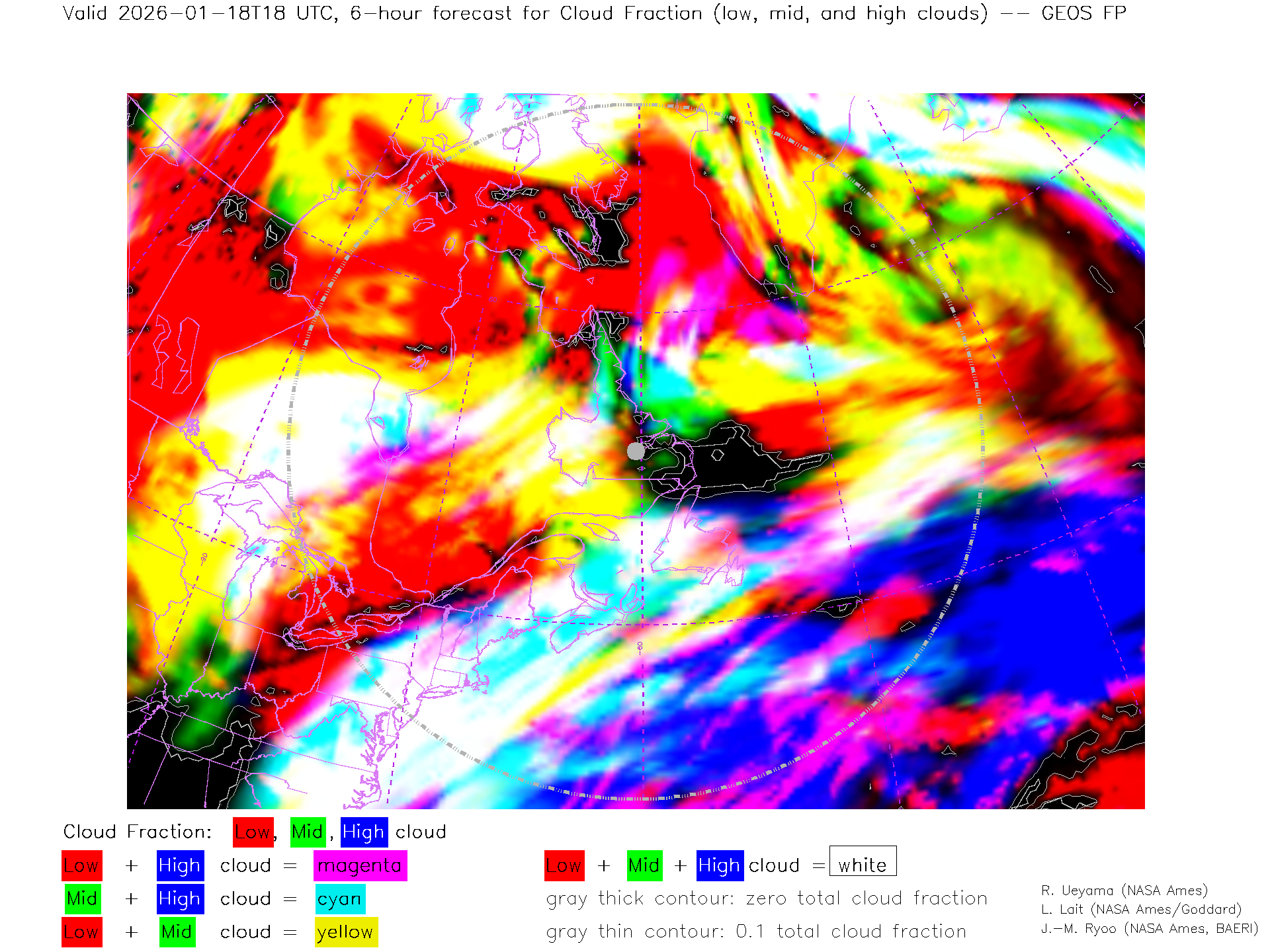 GEOS Forecast Low-, Mid- and High-level Cloud Fraction