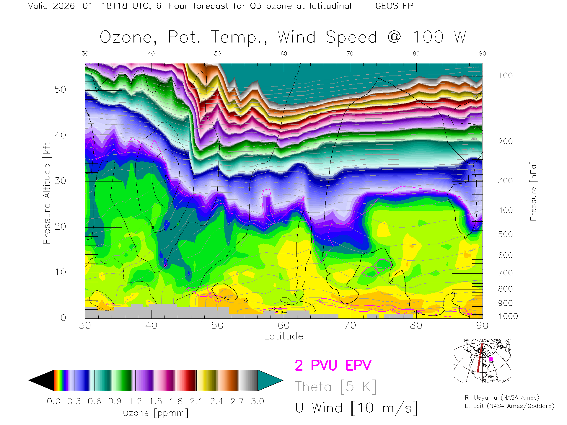GEOS Forecast Ozone X-Section (100 W)