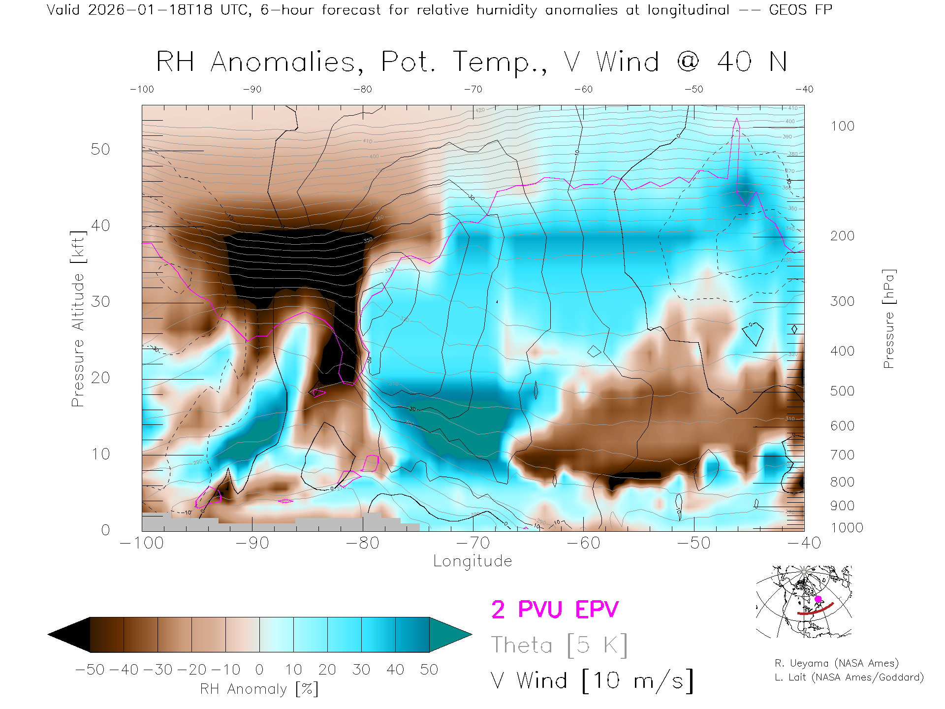 GEOS Forecast Rel. Hum. X-Section (40 N)